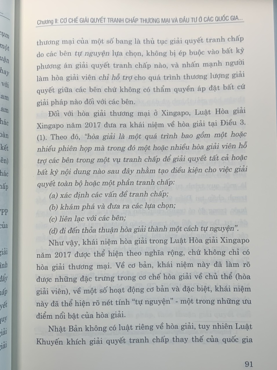 "Trong giai đoạn 2020-2021, Viên Khoa học pháp lý (Bộ Tư pháp) đã tổ chức nghiên cứu và bảo vệ thành công đề tài khoa học cấp Bộ "Nghiên cứu so sánh cơ chế giải quyết tranh chấp thương mại và đầu tư ở các quốc gia thành viên Hiệp định đối tác toàn diện và tiến bộ xuyên Thái Bình Dương". Trên cơ sở kết quả nghiên cứu của đề tài này, nhóm tác gải đã biên soạn cuốn sách "Cơ Chế Giải Quyết Tranh Chấp Thương Mại Và Đầu Tư Ở Các Quốc Gia Thành Viên Hiệp Định Đối Tác Toàn Diện Và Tiến Bộ Xuyên Thái Bình Dương (CPTPP)" nhằm giúp cho độc giả nhận thức sâu sắc hơn về cơ chế giải quyết tranh chấp thuưương mại và đầu tư ở các quốc gia thành viên Hiệp định CPTPP. Nội dung cuốn sách tập trung vào 4 cơ chế chính giải quyết tranh chấp thương mại và đầu tư gồm: thương lượng, hòa giải, trọng tài và tố tụng tòa án dưới góc độ so sánh và từ đó, đưa ra một số khuyến nghị nhằm hoàn thiện cơ chế giải quyết tranh chấp thương mai và đầu tư ở Việt Nam.