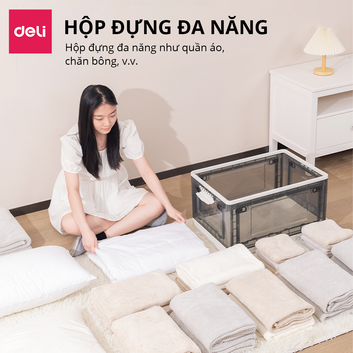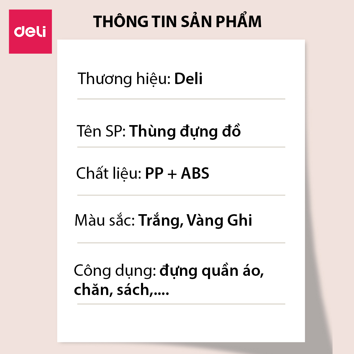 1. Thông tin chi tiết sản phẩm - Tên sản phẩm: Thùng đựng đồ đa năng - Màu sắc: Vàng, Đen - Dung tích: 56 lít/ 30 lít - Kích thước: Thùng 50L: 53 x