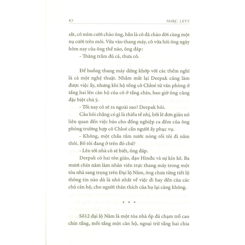 "Lần này, sẽ không có án mạng, không mất tích, không kinh dị, không giết người hàng loạt và cũng không một phút hãi hùng tột độ nào!" - Marc Levy