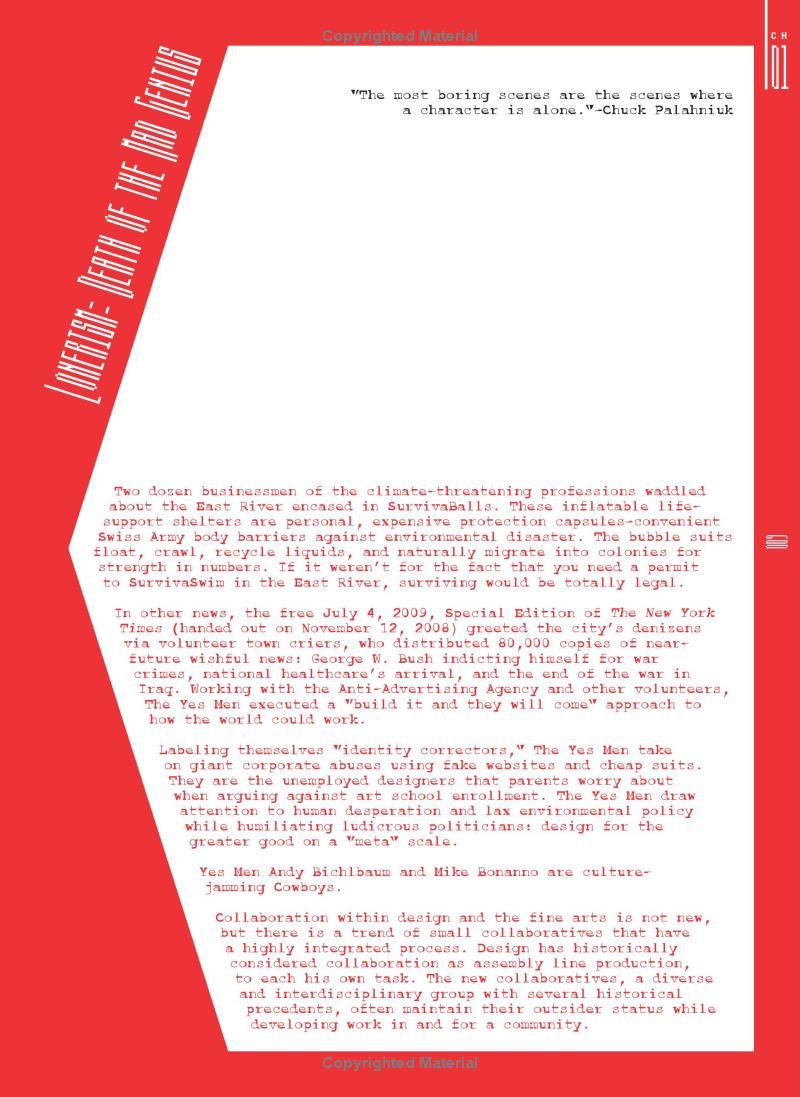 The object of CO LAB: is to promote the ideals and methods of contemporary design collaboration by informing on cultural context, surveying some unexpected practitioners, and highlighting techniques and practices that apply to studio work and forward-thinking education initiatives. There will be three main sections with 10-20 short-burst chapters in each, befitting the collection/handbook format.