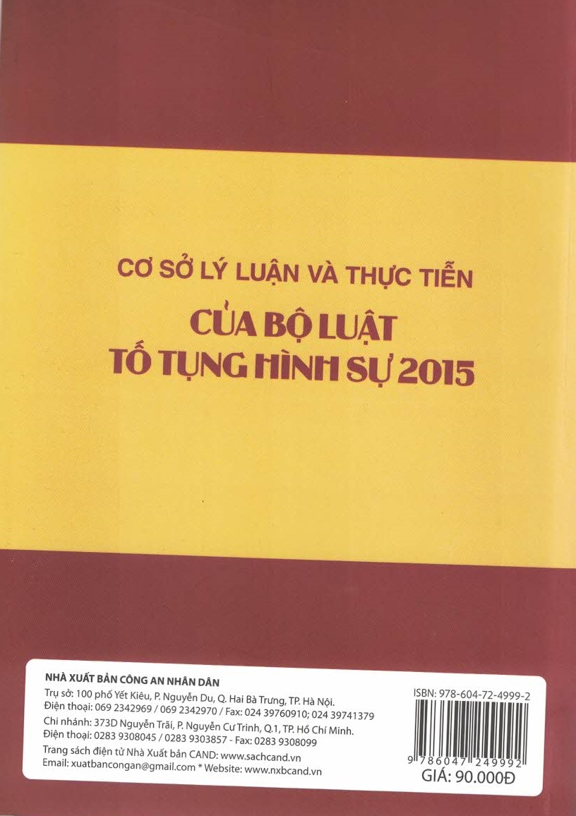 Bình Luận Khoa Học Bộ Luật Tố Tụng Hình Sự Năm 2015 (Tái Bản) Bộ luật tố tụng hình sự 2015 được Quốc hội thông qua ngày 27-11-2015, có hiệu lực từ ngày 1-1-2018. Việc