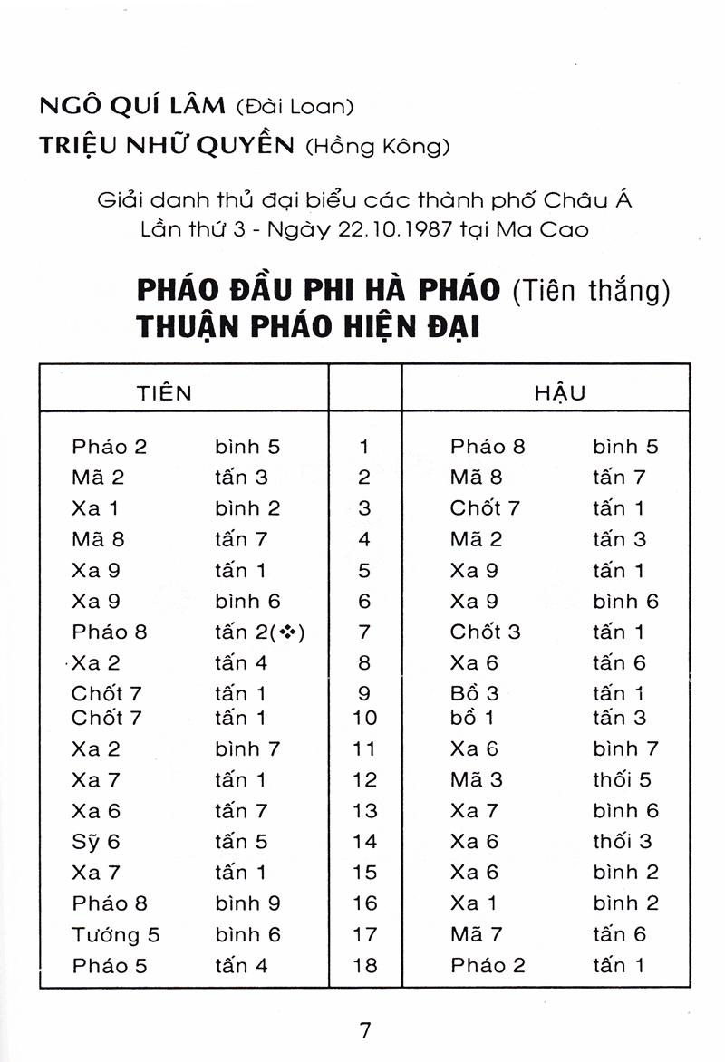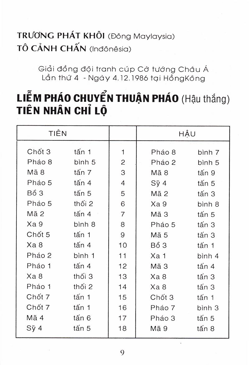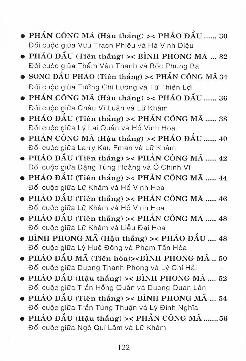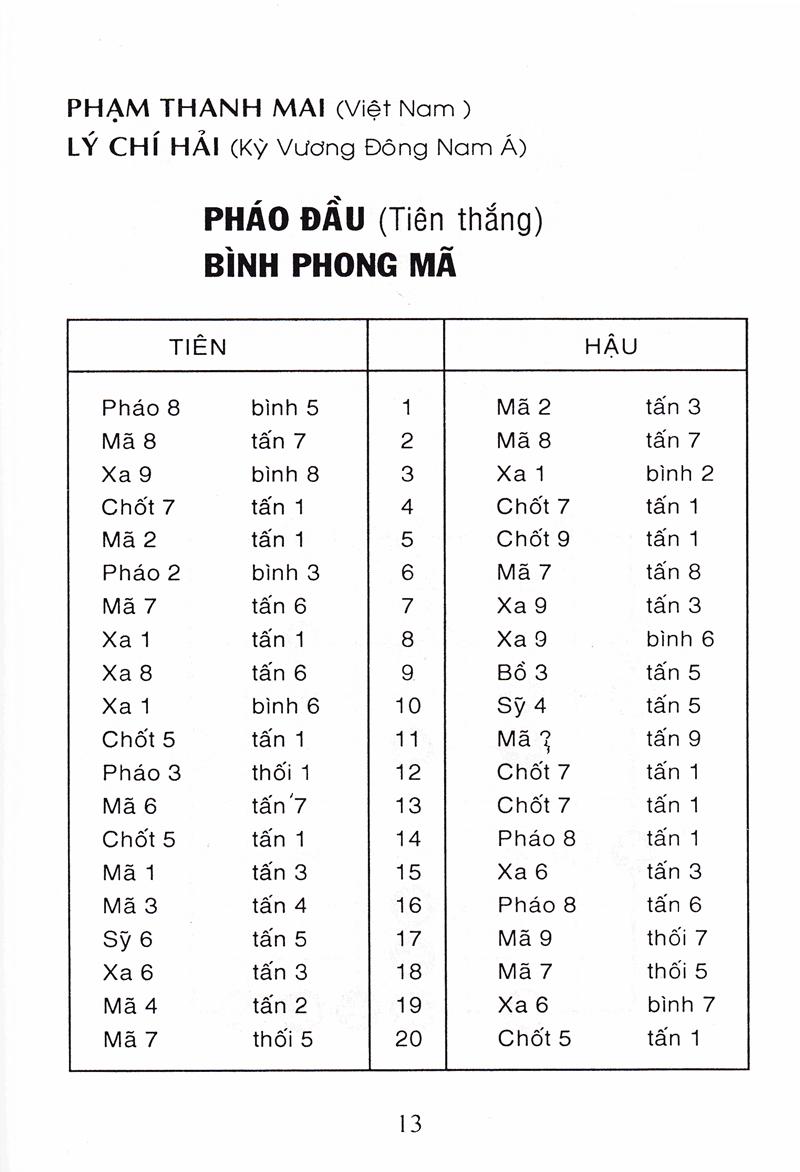 Tượng Kỳ Hậu Vệ Cuốn sách Tượng kỳ hậu vệ gồm 5 phần: Phần thứ nhất: Bình phong mã đối đương đầu pháo quá hà xe, bình xe áp mã cuộc (gồm 5 cuộc) Cuộc