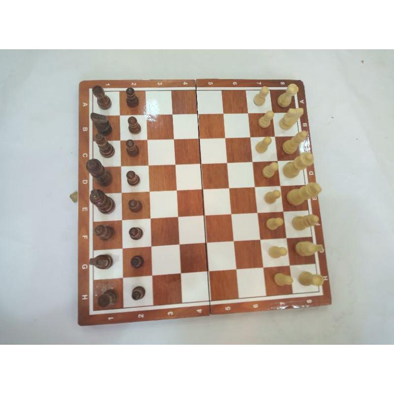 bộ sản phẩm bảo gồm: : 1 bàn cờ vua kích thước 35x 35 x2 cm bàn cờ vua dán giấy đề can Bộ quân gỗ thông ,32 quân, chơi cờ dành cho lứa tuổi nhỏ , rèn luyện tư duy, sâng tạo, chiến thuật