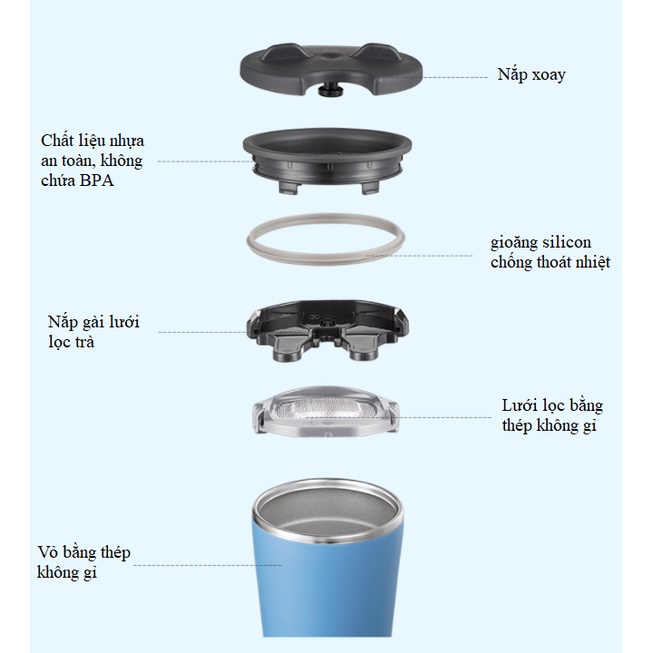 - Dung tích: 355 ML - Nắp Closeable Press-In chống tràn và hạn chế tối đa tình trạng bắn nước - Thép không gì cao cấp giữ nguyên hương vị - Tay cầm công thái