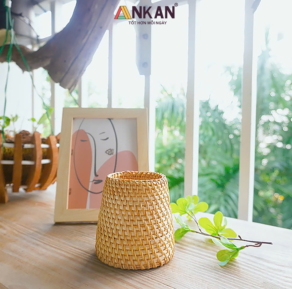 Cốc mây tự nhiên dùng để đựng bút và đồ dùng văn phòng