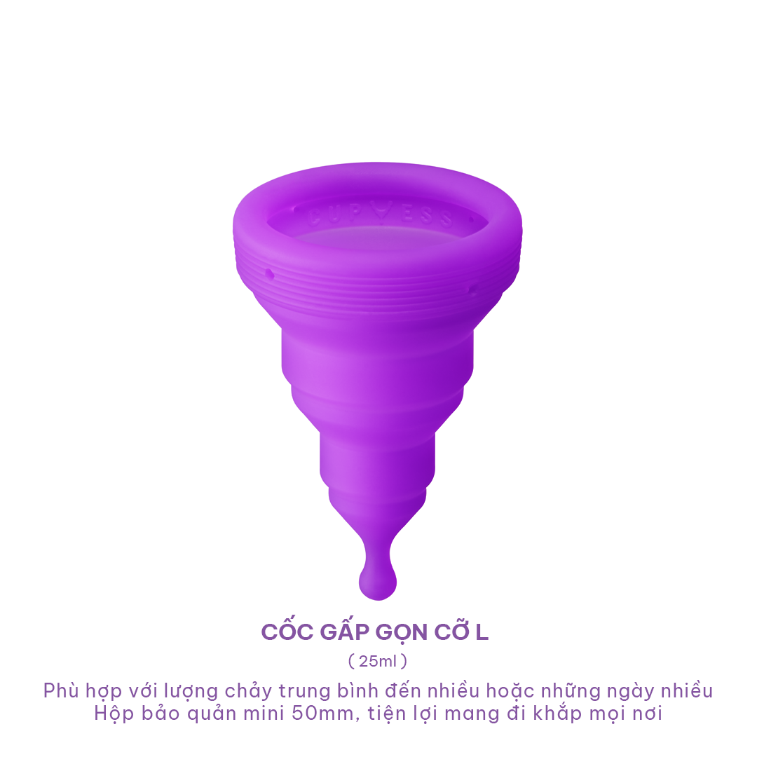 THÔNG TIN SẢN PHẨM - Tên sản phẩm: Cốc nguyệt san Gấp gọn Z Cup cỡ L; - Dung tích 25ml, sức chứa tối đa 8 - 10 giờ liên tục; - Đối tượng sử