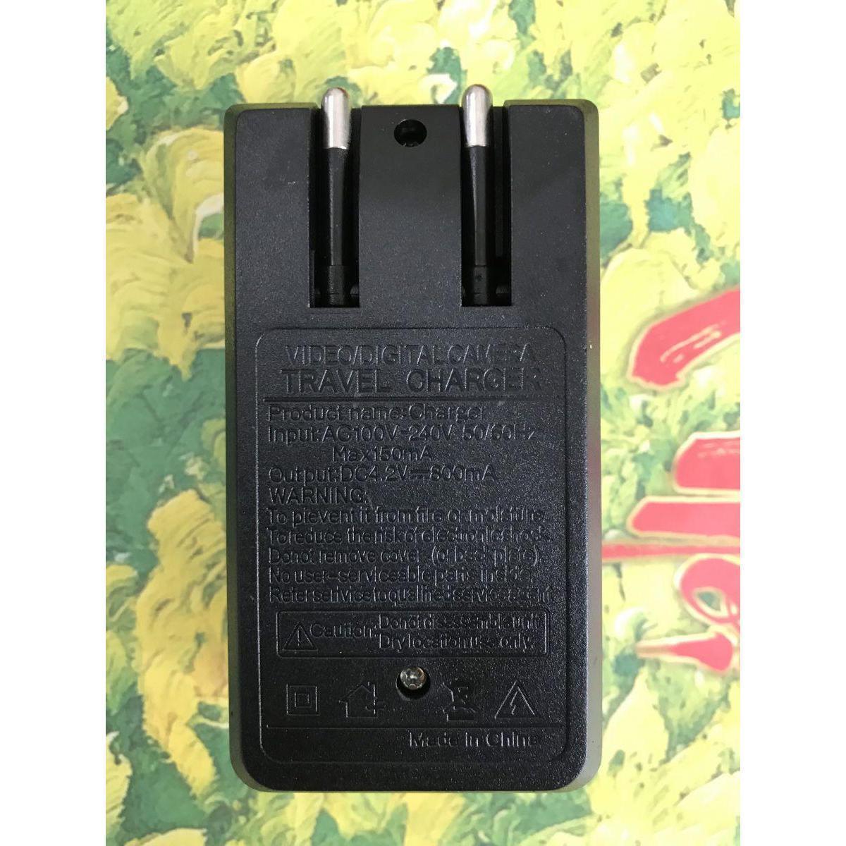 Bộ sạc có đèn báo pin đang sạc (đỏ) và pin đã sạc đầy (xanh).
