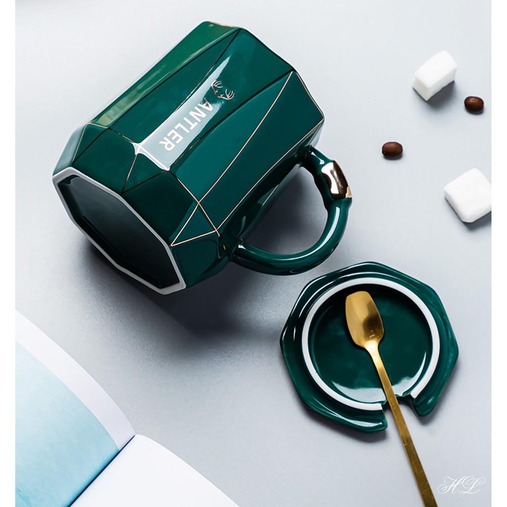 ✨Cốc sứ xanh cổ vịt có nắp kèm thìa inox | CỐC UỐNG TRÀ CAFE XANH NGỌC BÍCH PHONG CÁCH BẮC ÂU DECOR