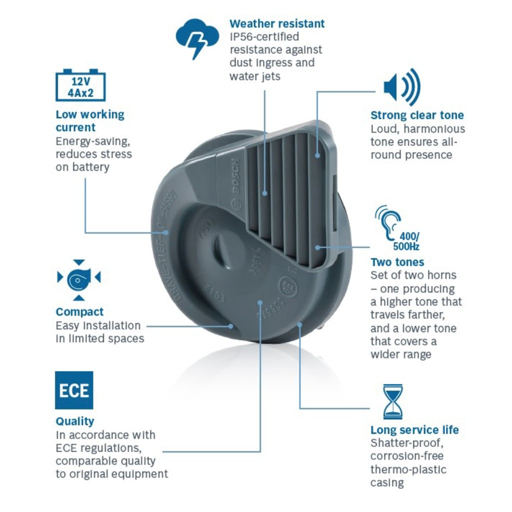 Broz Car Accessories - Bosch Bosch EC12-C Strider Fanfare Horn Universal Car Horn Sound Test