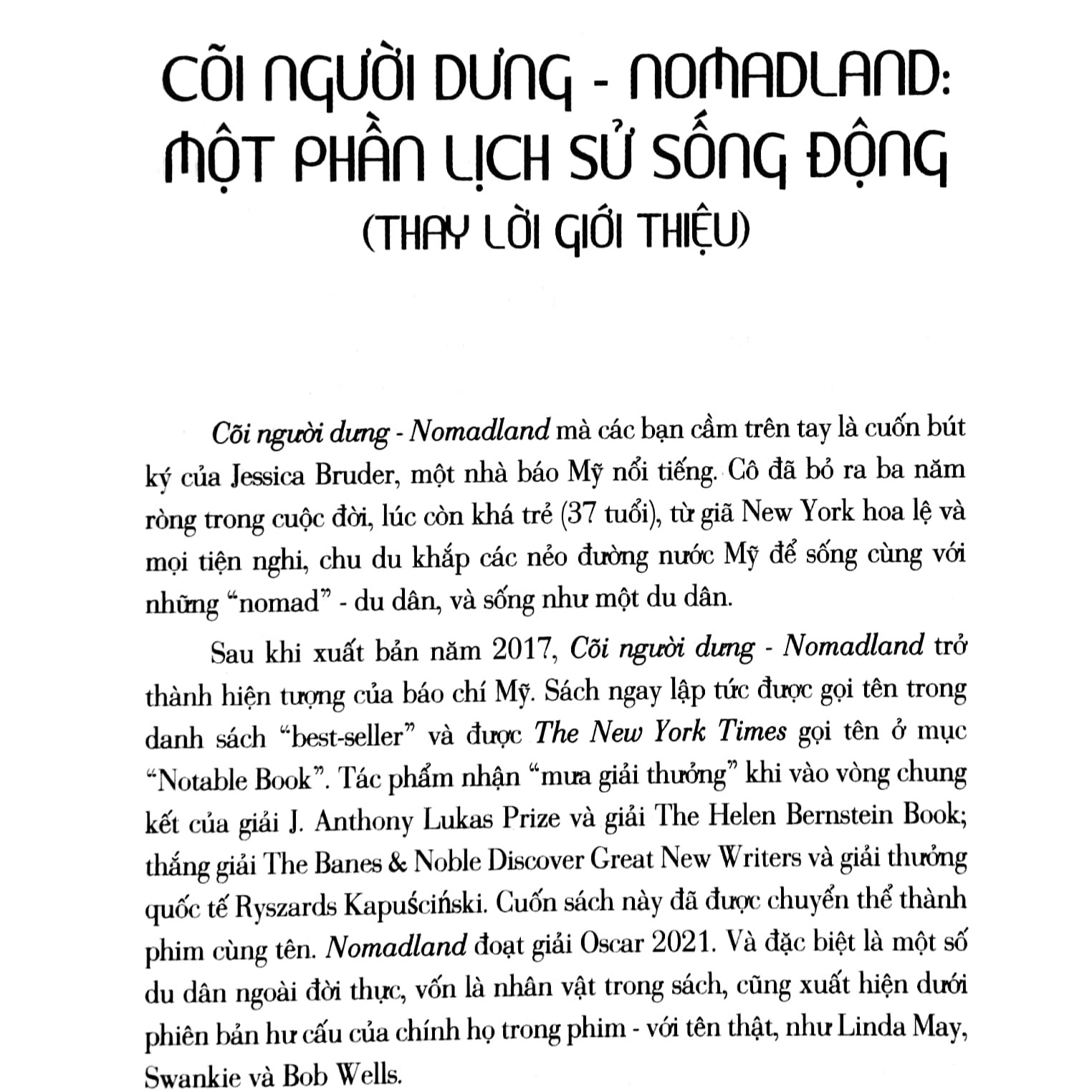 Nhà xuất bản Phụ nữ Việt Nam xin trân trọng giới thiệu với quý độc giả cuốn sách “Cõi người dưng - Nomadland - đời du dân Mỹ thế kỷ 21”.
