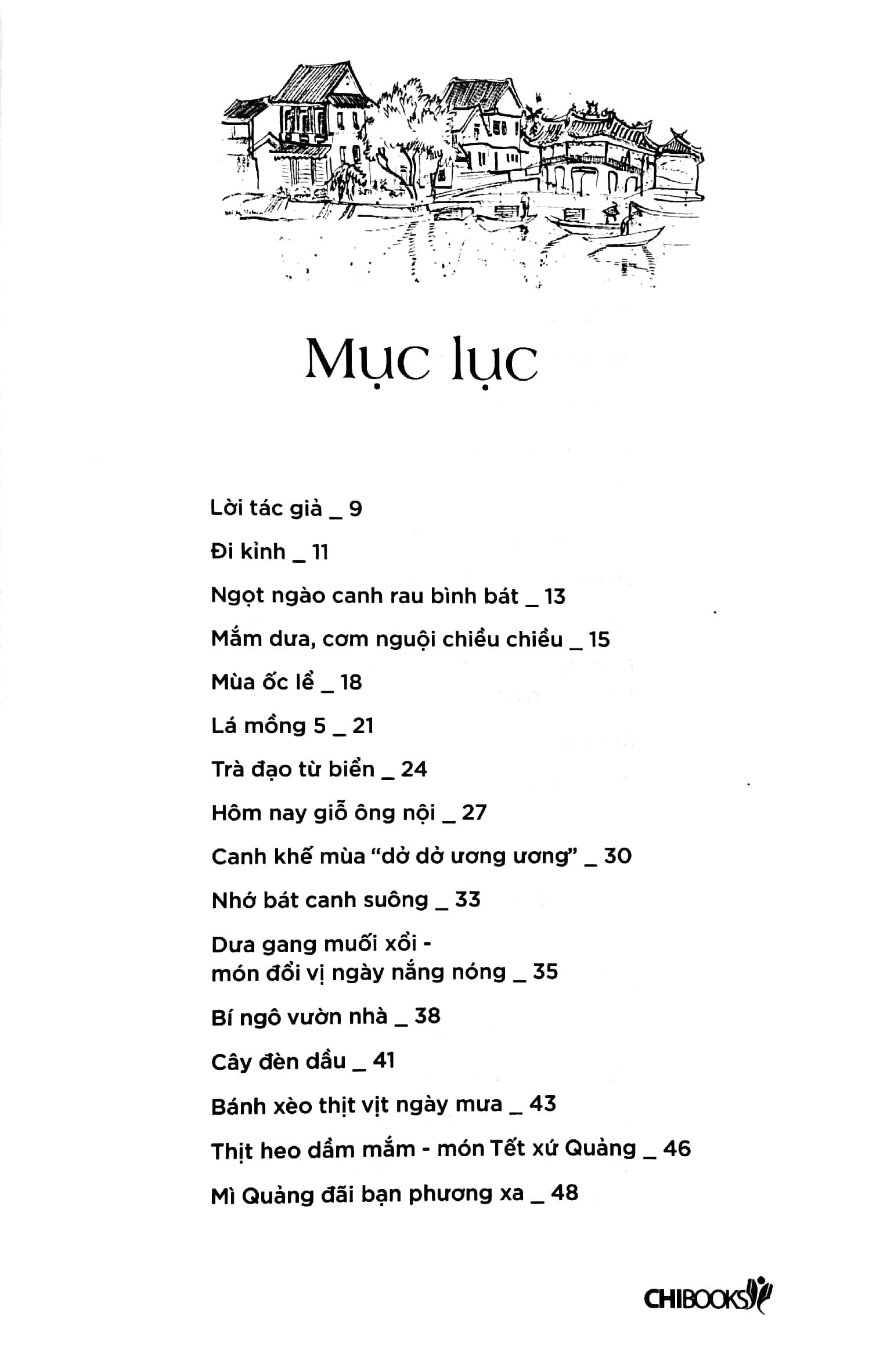 Ẩm thực và văn hóa ẩm thực gắn liền với mỗi chúng ta trên mỗi chặng đường đời. Lúc nhỏ, bà ta, má ta nấu sao ăn vậy; và dần dà, thâm lậm vào ta lúc nào không hay cái cách nấu nướng của má, để rồi lớn lên, mỗi chúng ta tự nhiên ý thức được trọng trách lưu giữ và truyền lại cho lớp con cháu hồn cốt món ăn của bà, của má ta xưa. Bằng những bài viết về món ăn và góc nhớ ký ức, tôi nhận trên vai mình nhiệm vụ vẽ lại bức tranh xưa mà không xưa, những bữa ăn hằng ngày mà tôi và người xứ Quảng tôi luôn níu giữ dù có đi đâu về đâu.