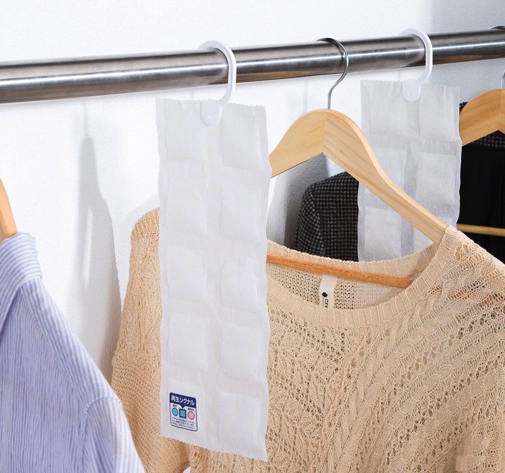 - Với cách cất giữ quần áo kiểu treo: Bạn có thể treo túi than hoạt tính xen kẽ với quần áo, có khoảng cách từ 5 ~ 10 bộ quần áo.