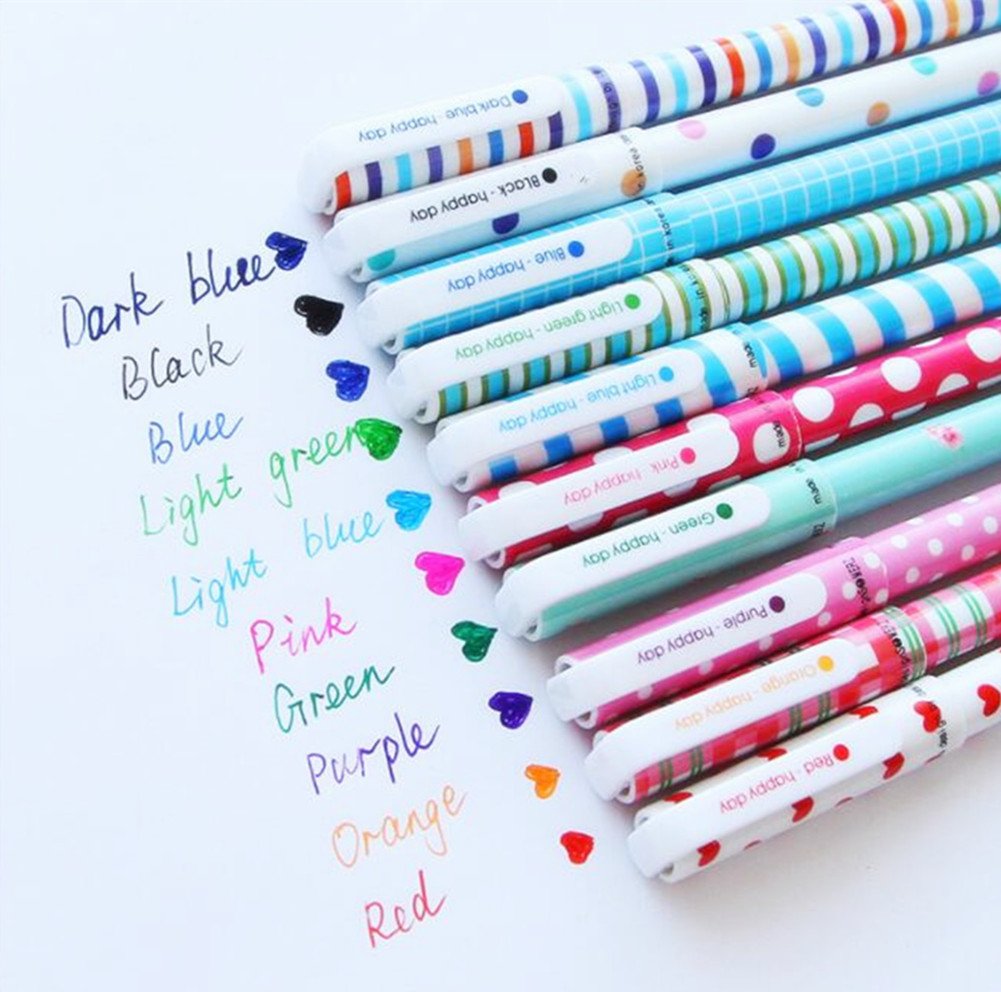 ✨Combo 10 bút mực nước gel xanh dương đậm nhạt xanh lá tím hồng cam đỏ ngân hà hoạt hình họa tiết cute