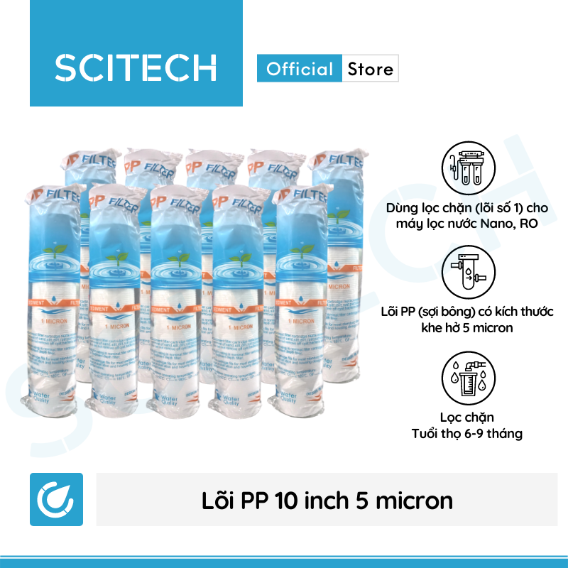 Bộ lõi 1,2,3 10 inch by Scitech giúp sơ bộ lọc loại bỏ các cặn bẩn, rong rêu, bùn đất, tạp chất thô, chất lơ lửng, chất hữu cơ, trong nước và giúp bảo vệ,