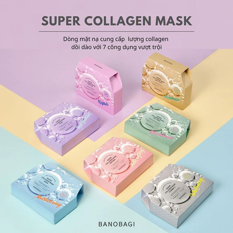 Pore Tightening: Thu nhỏ lỗ chân lông và kiểm soát bã nhờn. **Dòng 2: Mặt nạ BANOBAGI Super Collagen Mask :