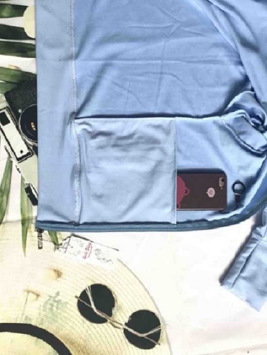 - Tay áo 2 lớp trùm toàn bộ bàn tay và có móc tay + Cổ áo trùm toàn bộ cổ và gáy (Rất tiện dụng ngay cả khi ko sử dụng mũ) + Áo có mũ che kín đầu, bảo vệ tối đa ánh nắng chiếu trực tiếp