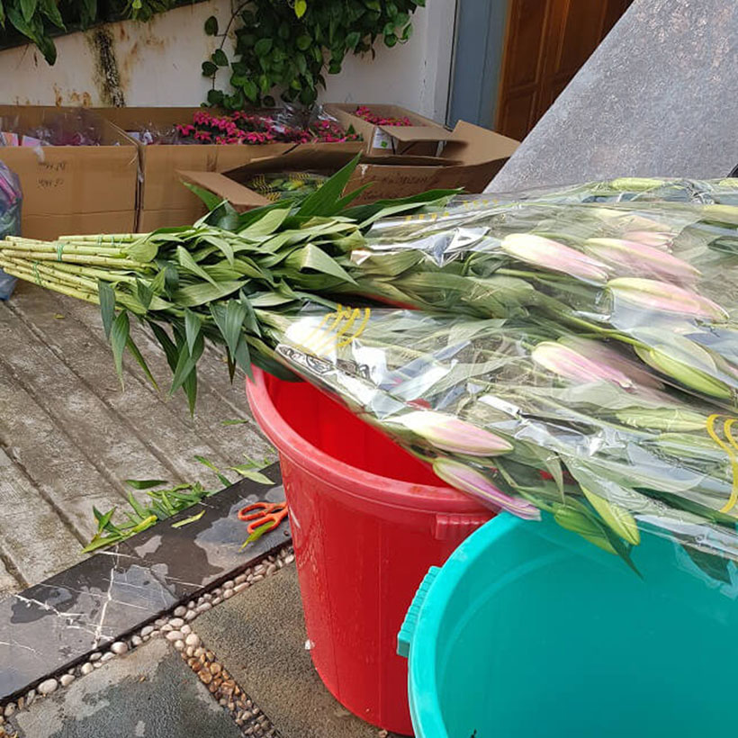 •  Bước 1: Thu hái hoa Lily vào thời điểm thích hợp (Nêu cắt sớm từ 2 – 3 ngày so với bình thường)
