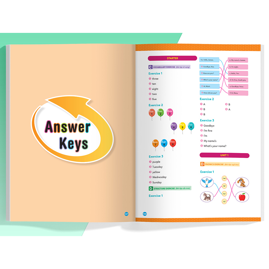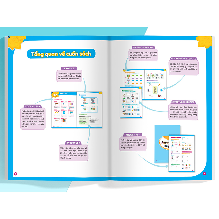 - ANSWER KEY (Đáp án chi tiết) Cuốn sách được thiết kế với nội dung và hình ảnh sinh động, cấu trúc chặt chẽ, rõ ràng. Chắc chắn đây sẽ là một bộ tài liệu vô cùng hữu ích dành cho các em trên con đường học tiếng Anh.