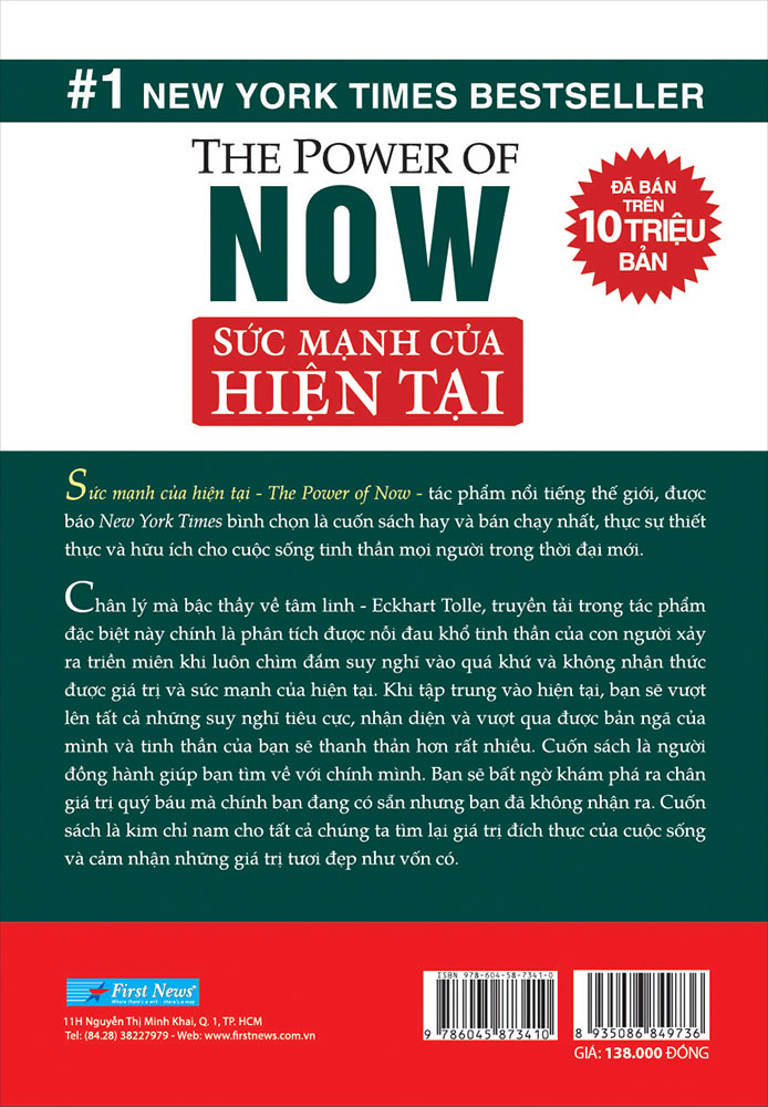 Sức mạnh của hiện tại - The Power of now - tác phẩm nổi tiếng thế giới, được thời báo New York Times bình chọn là cuốn và bán chạy nhất, thực sự thiết thực và hữu ích cho cuộc sống tinh thần mọi người trong thời đại mới. Chân lý mà bậc thầy về tâm linh - Eckhart Tolle, truyền tải trong tác phẩm đặc biệt này chính là phân tích được nỗi đau khổ tinh thần của con người xảy ra triền miên khi luôn chìm đắm suy nghĩ vào quá khứ và không nhận thức được giá trị và sức mạnh của Hiện tại. Khi tập trung vào hiện tại, bạn sẽ vượt lên tất cả những suy nghĩ tiêu cực, tìm được bản ngã của mình và tinh thần của bạn sẽ thanh thản hơn rất nhiều.