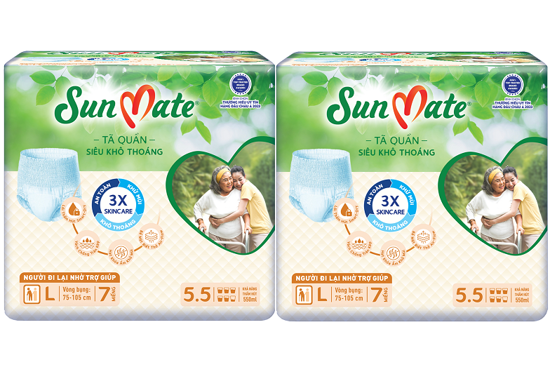 - Với công nghệ tiên tiến nhất tạo ra các sản phẩm mềm mại, thoáng khí, khả năng kháng khuẩn, nhằm giảm thiểu sự phát triển mùi và thấm hút cực nhanh, SunMate là lựa chọn tối ưu cho việc chăm sóc vệ sinh người cao tuổi, giúp họ luôn thoải mái, an toàn tự tin vui sống mỗi ngày. SunMate là người bạn đồng hành giúp chăm sóc người thân yêu tốt nhất.
