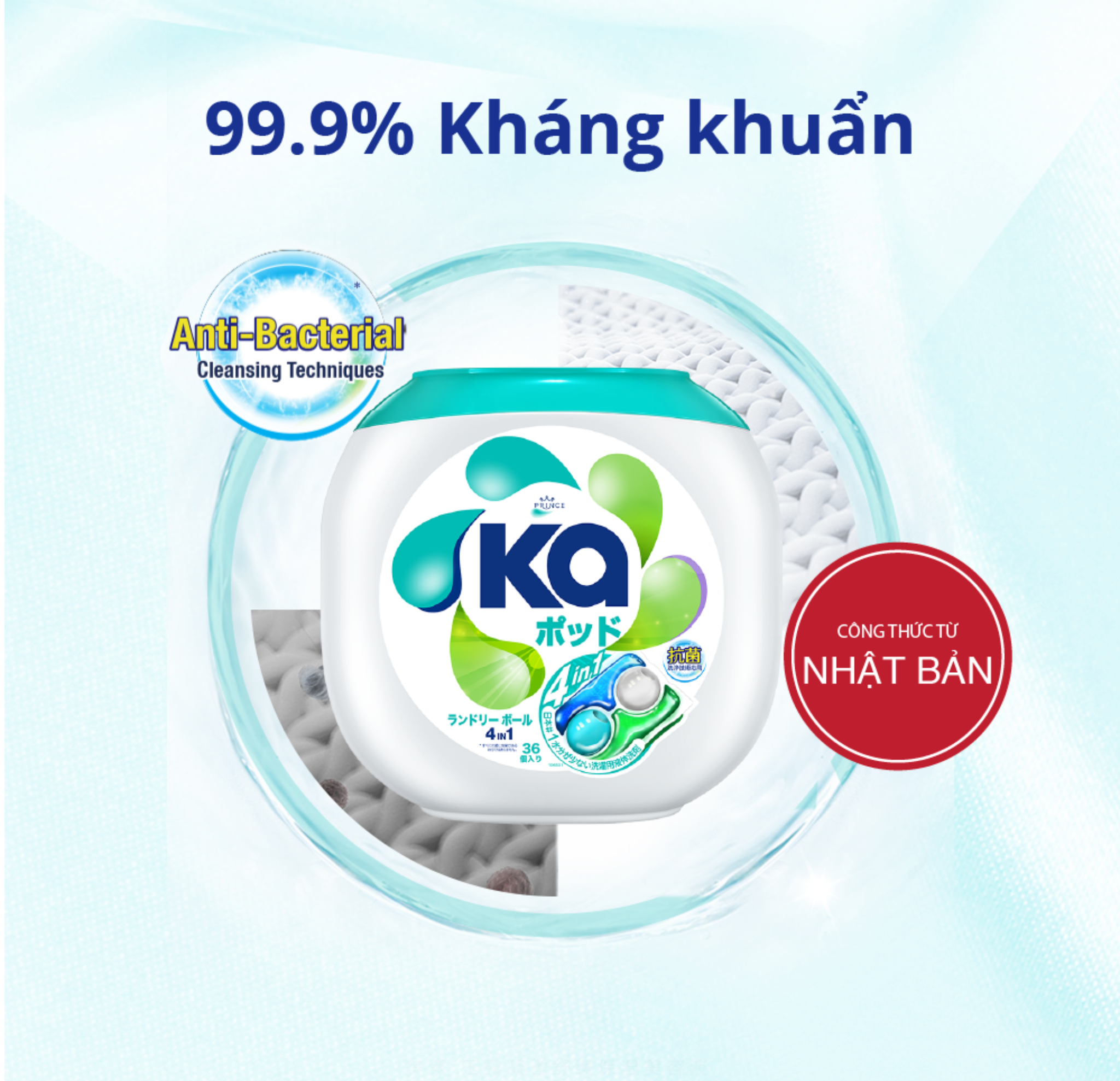 Không còn tình trạng rơi đổ lộn xộn và phải đong đếm bột giặt, việc giặt giũ sẽ tiện lợi hơn với Viên giặt đa năng Ka 4 trong 1. Với công thức siêu đậm đặc số 1 Nhật Bản, 1 viên giặt Ka dễ dàng hòa tan trong giặt và giặt 2.5-6kg quần áo. Chỉ cần một viên là tất cả những gì bạn cần để đồ giặt mềm hơn, sạch hơn và thơm tho hơn. 99,9% chống vi khuẩn Công suất làm sạch gấp 10 lần Làm mềm và sáng quần áo Tương thích cho máy giặt cửa trên và cửa trước Thích hợp cho sấy khô trong nhà Công thức Sud thấp Liều lượng khuyến nghị: 1 viên nang dùng cho lượng quần áo <7kg Cảnh báo:
