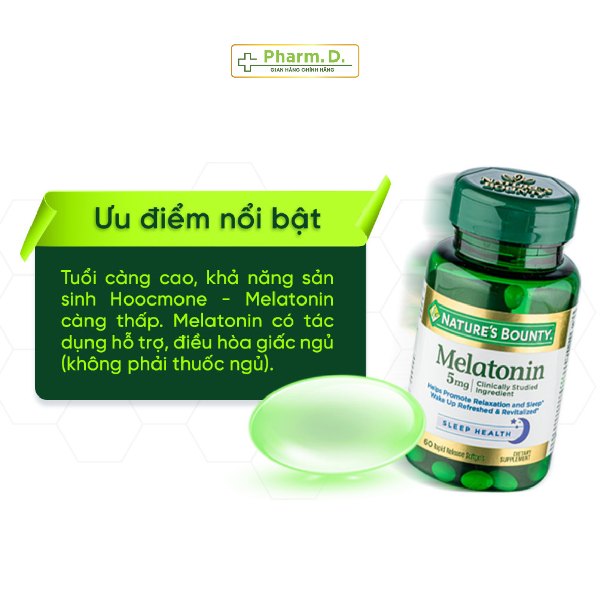 Mua tại TiktokCOMBO 2 Hộp Viên Uống NATURE'S BOUNTY Melatonin 5mg Hỗ Trợ Điều Hòa Giấc Ngủ Nature's Bounty Melatonin 5mg cung cấp hoạt chất melatonin giúp điều hòa giấc ngủ, giảm căng thẳng do bị mất ngủ, suy nhược, căng thẳng thần kinh. Sản phẩm được nghiên cứu và sản xuất bởi Nature's Bounty, thương hiệu chăm sóc sức khỏe nổi tiếng tại Mỹ. Thương hiệu: Nature's Bounty Xuất xứ: Mỹ Hạn sử dụng: Xem trên bao bì sản phẩm Quy cách đóng gói: Hộp 60 Viên THÀNH PHẦN Melatonin 5mg, Tá dược vừa đủ. CÔNG DỤNG