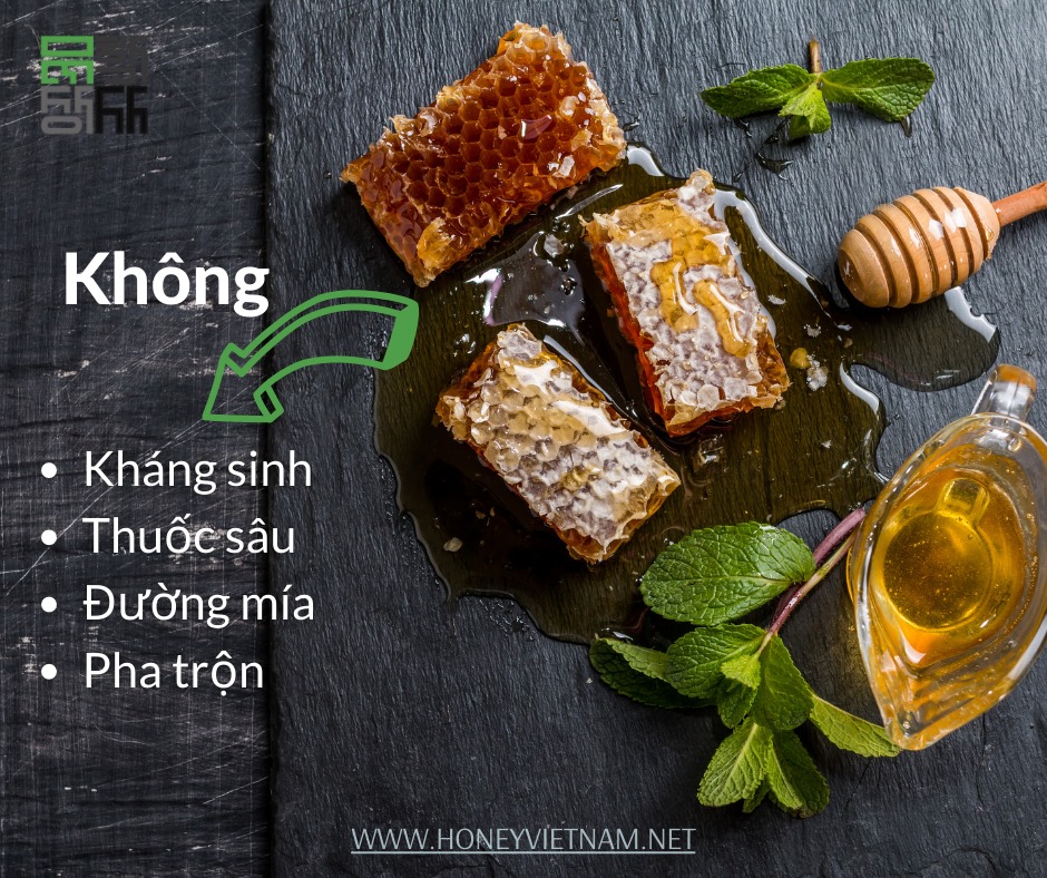 • 100% mật ong tự nhiên không bị pha đường hoặc siro đường. 3 KHÔNG: đường mía, tồn dư kháng sinh, tồn dư thuốc sâu trong quá trình nuôi ong. Nguồn mật đảm bảo, không pha trộn với các loại mật thấp tiền khác.