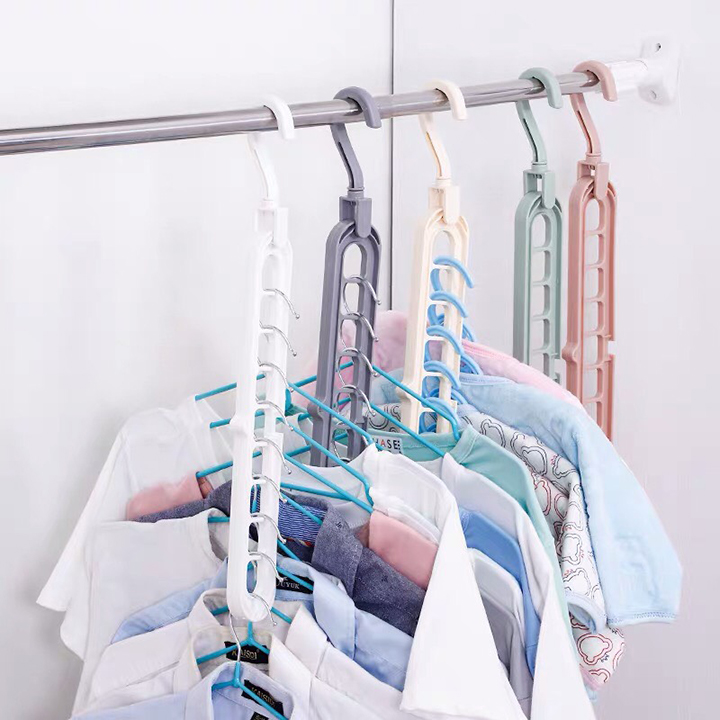 Móc treo quần áo đa năng tiện ích tiết kiệm diện tích (9 lỗ) thiết kế thông minh, tiện lợi treo được 9 móc trên 1 dàn. Treo được nhiều quần áo. Treo ngang treo dọc chỉ cần 1 động tác nhỏ. Chất liệu Nhựa ABS cứng, chịu lực cao. an toàn cho sức khỏe.