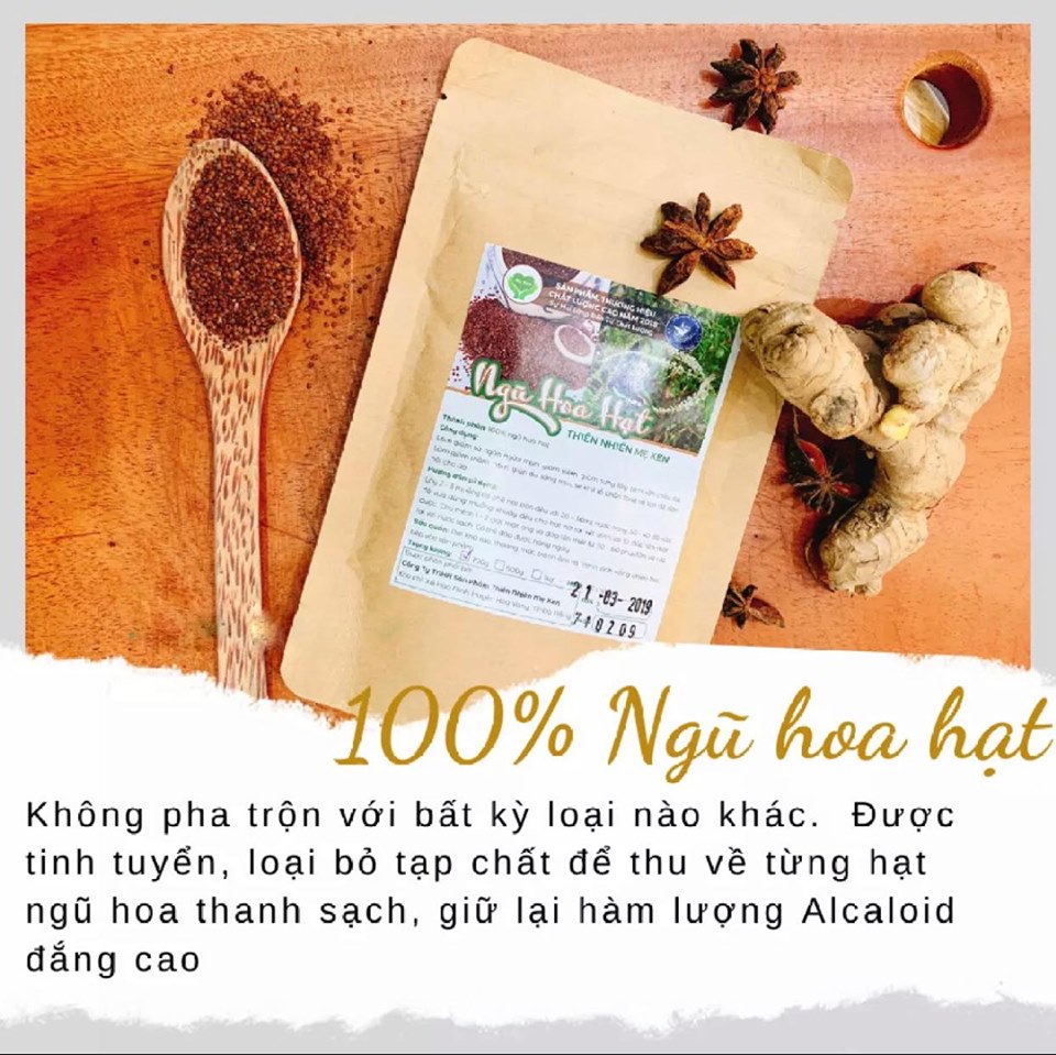 NGŨ HOA HẠT MẸ KEN Ngũ hoa hạt là khắc tinh của mụn nhọt, giúp loại bỏ mụn một cách nhanh chóng, an toàn, đồng thời dưỡng da mịn màng và căng sáng hơn. CÔNG DỤNG: Se khít lỗ chân lông, giảm lượng dầu dư thừa trên da, hỗ trợ trị các loại mụn, thậm chí là mụn lâu năm. Làm mờ thâm do mụn, nám, tàn nhang Tăng độ đàn hồi cho da, giúp da căng bóng và mịn màng. Giảm cơn đau đầu, chóng mặt. CÁCH SỬ DỤNG NGŨ HOA HẠT ĐỂ TRỊ MỤN: Bạn chỉ cần lấy khoảng 2 thìa ngũ hoa hạt, trộn với nước ấm thành hỗn hợp sệt, sau đó đắp lên mặt và thư giãn trong khoảng 30 phút, đến khi mặt nạ gần khô thì rửa sạch với nước. Kiên trì thực hiện sẽ thấy tình trạng mụn cải thiện, da sáng và mịn màng hơn. ĐẮP TUẦN 1-2 LẦN THƯ GIÃN DA RẤT ĐẸP MỊN LÊN TRÔNG THẤY KẾT NHỚ HỢP TẨY DA CHẾT CHO MẶT NHA CHỊ EM