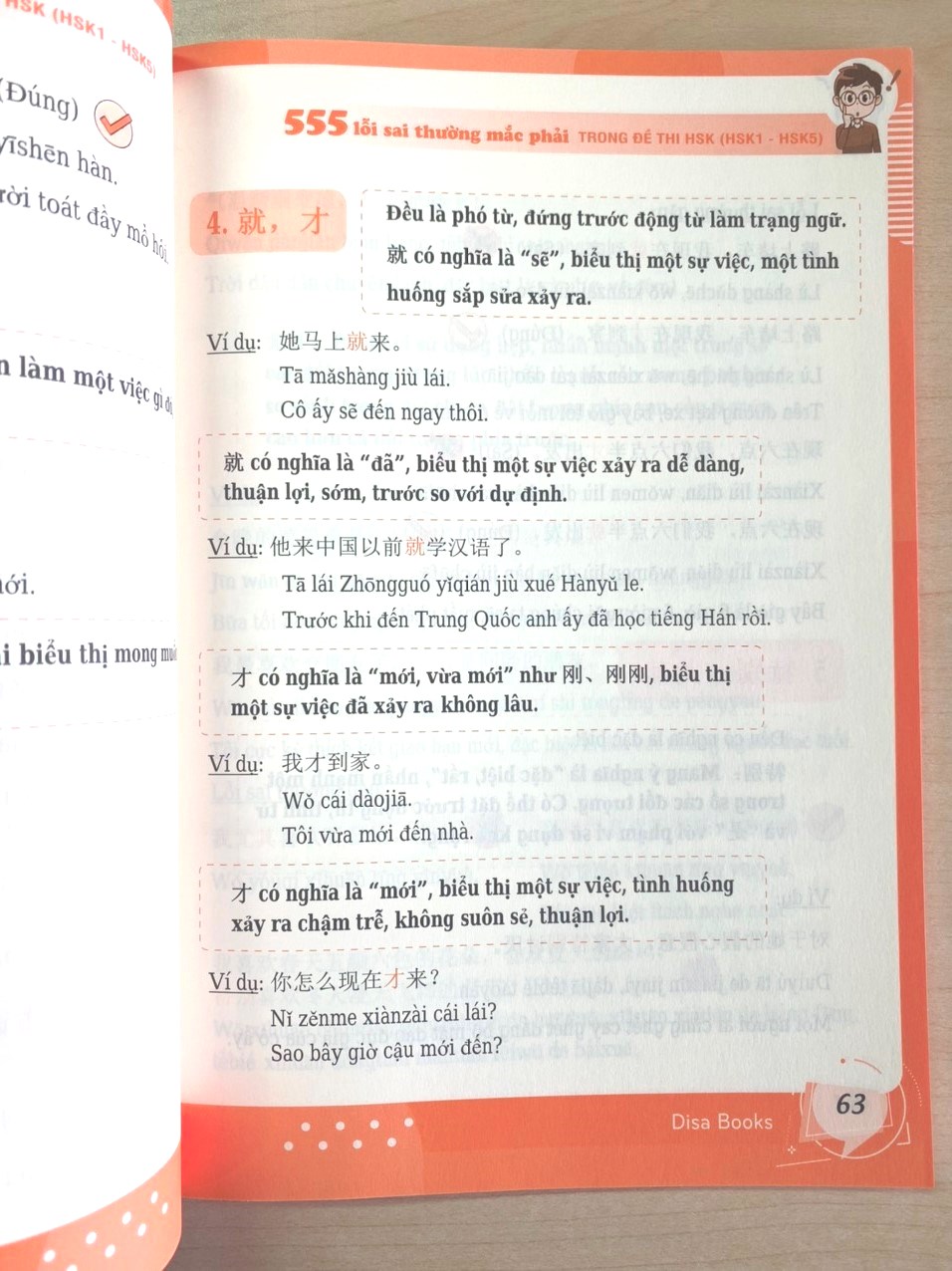 Cuốn sách 555 lỗi sai thường mắc phải trong đề thi HSK được biên soạn dựa trên nỗi thấu hiểu mà nhiều người trong chúng ta hay mắc phải khi ôn tập các cấp thi từ HSK1 đến HSK5 nhằm giúp các bạn có thể nắm bắt những điểm quan trọng trong đề thi HSK và tiến hành ôn thi một cách khoa học, đạt hiểu quả tốt nhất.