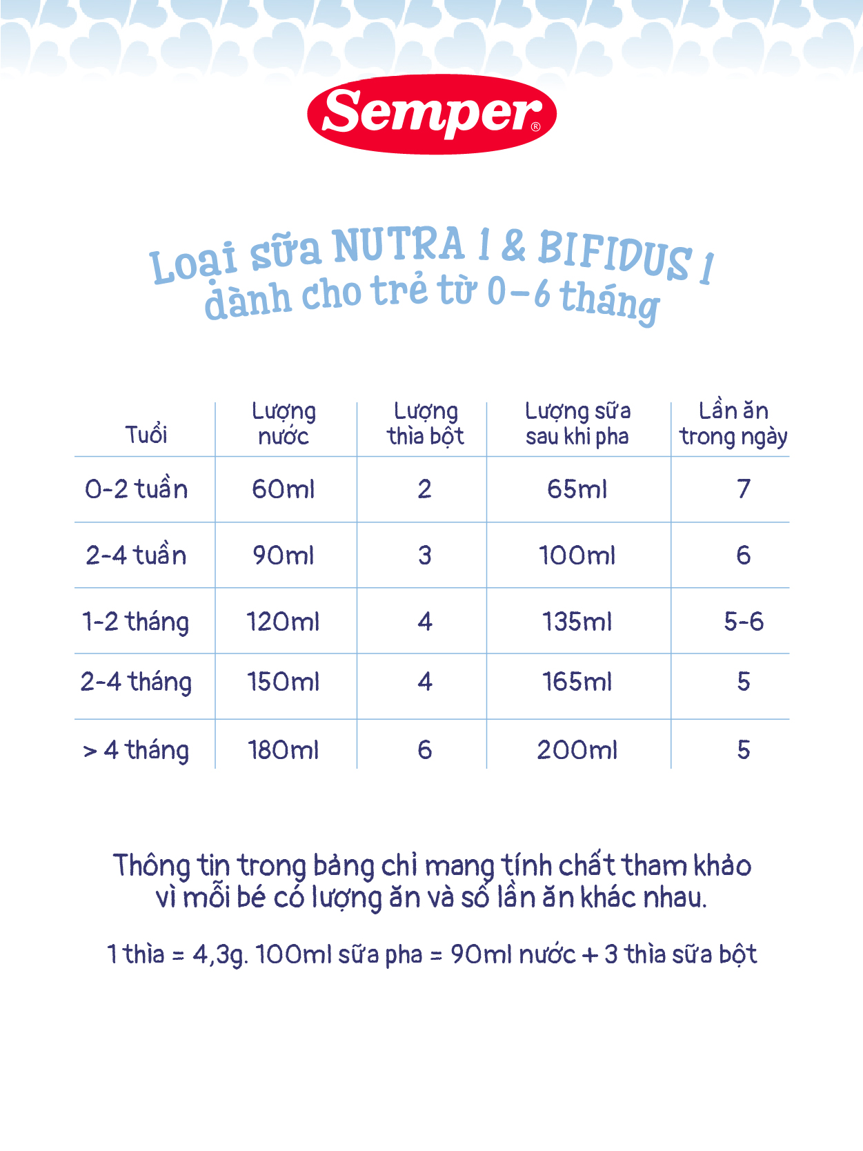 - Hạn sử dụng: 24 tháng CÔNG DỤNG SEMPER BIFIDUS 1 - Sản phẩm sữa béo dành cho trẻ bị táo bón và trẻ không dung nạp đường Lactose.