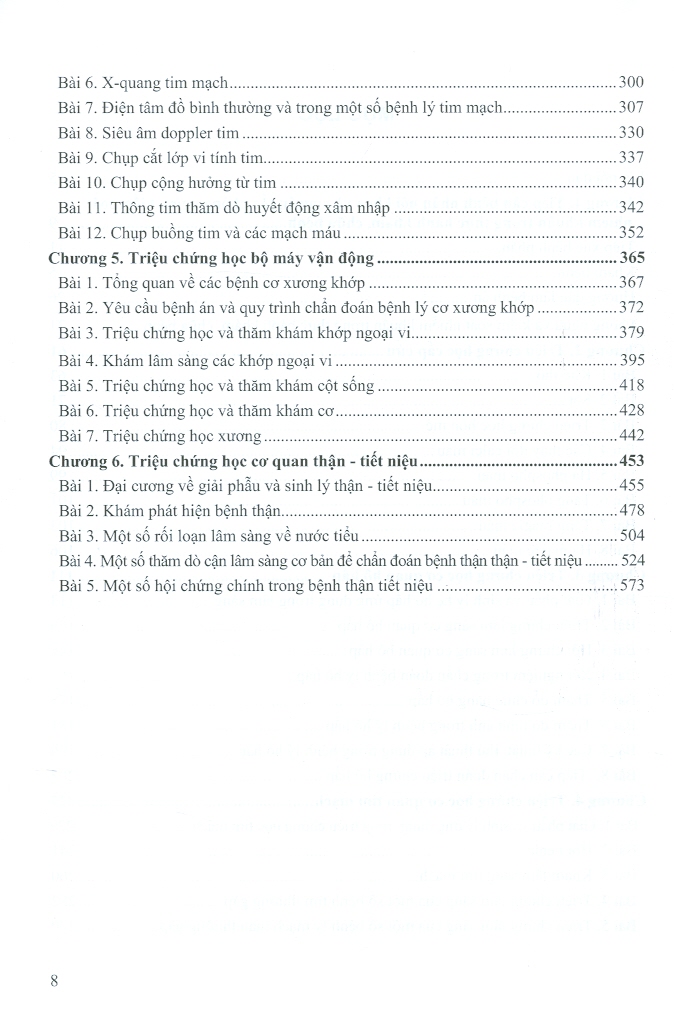 Triệu chứng học nội khoa tập 1 gồm 6 chương, mỗi chương giới thiệu một cách hệ thống về các triệu chứng lâm sàng, phương pháp thăm khám và các xét nghiệm thăm dò chẩn đoán của từng bộ máy cơ quan trong cơ thể: