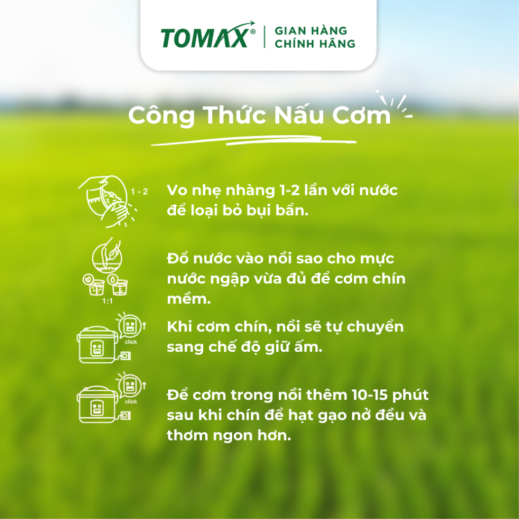 COMBO 3 TÚI 5KG GẠO ĐÀI THƠM Tomax - TƠI XỐP, DẺO THƠM, THƠM DỊU - TOMAX Gạo hữu cơ Đài Thơm Tomax 100% không có chất bảo quản, không có chất chống mọt, chống