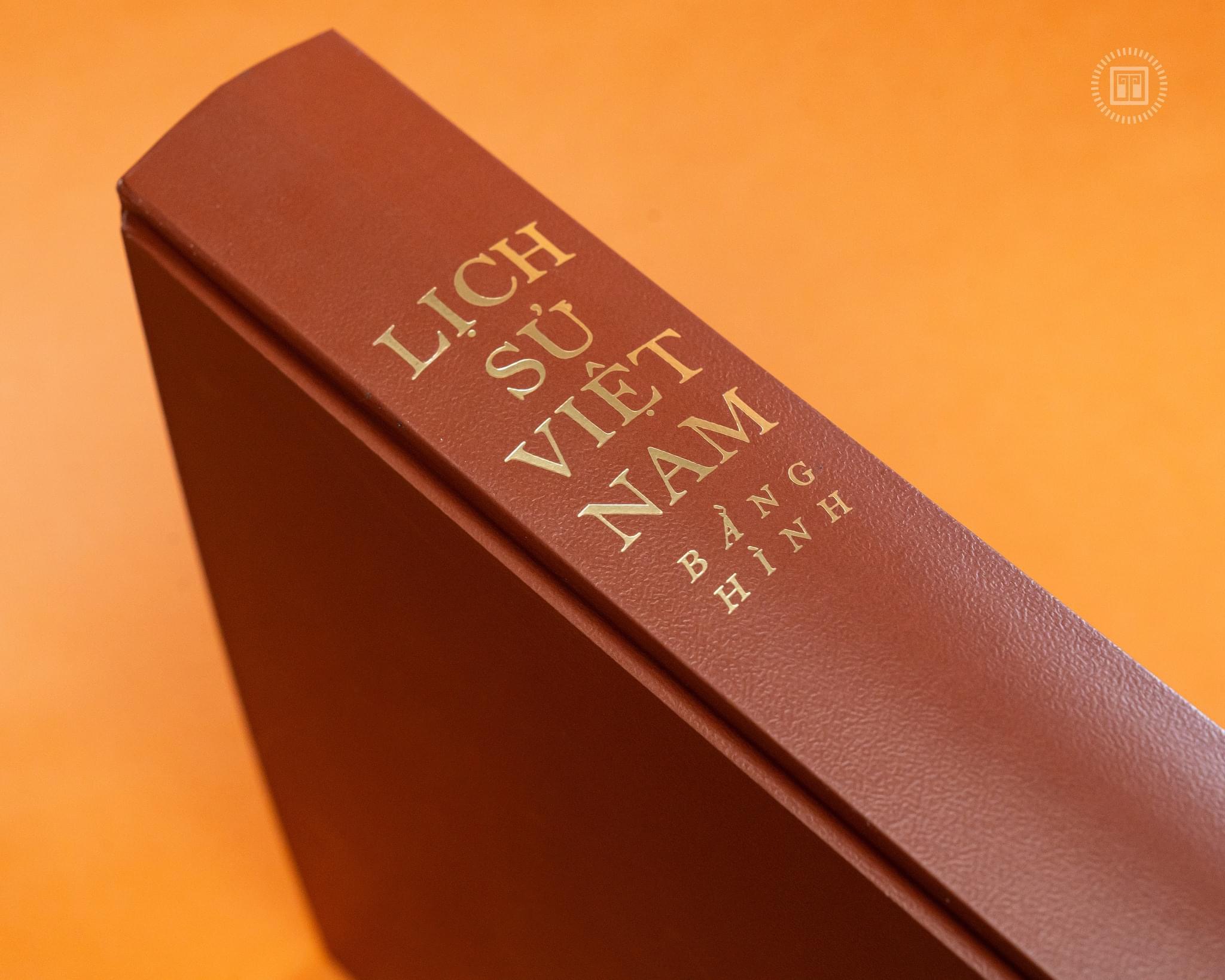 Ấn bản cao cấp Việt Nam sử lược có bìa cứng, ruột in 2 màu trên giấy GV76-BB định lượng 100 gsm, quà tặng kèm gồm bản đồ, bookmark và bộ postcard 8 tấm.