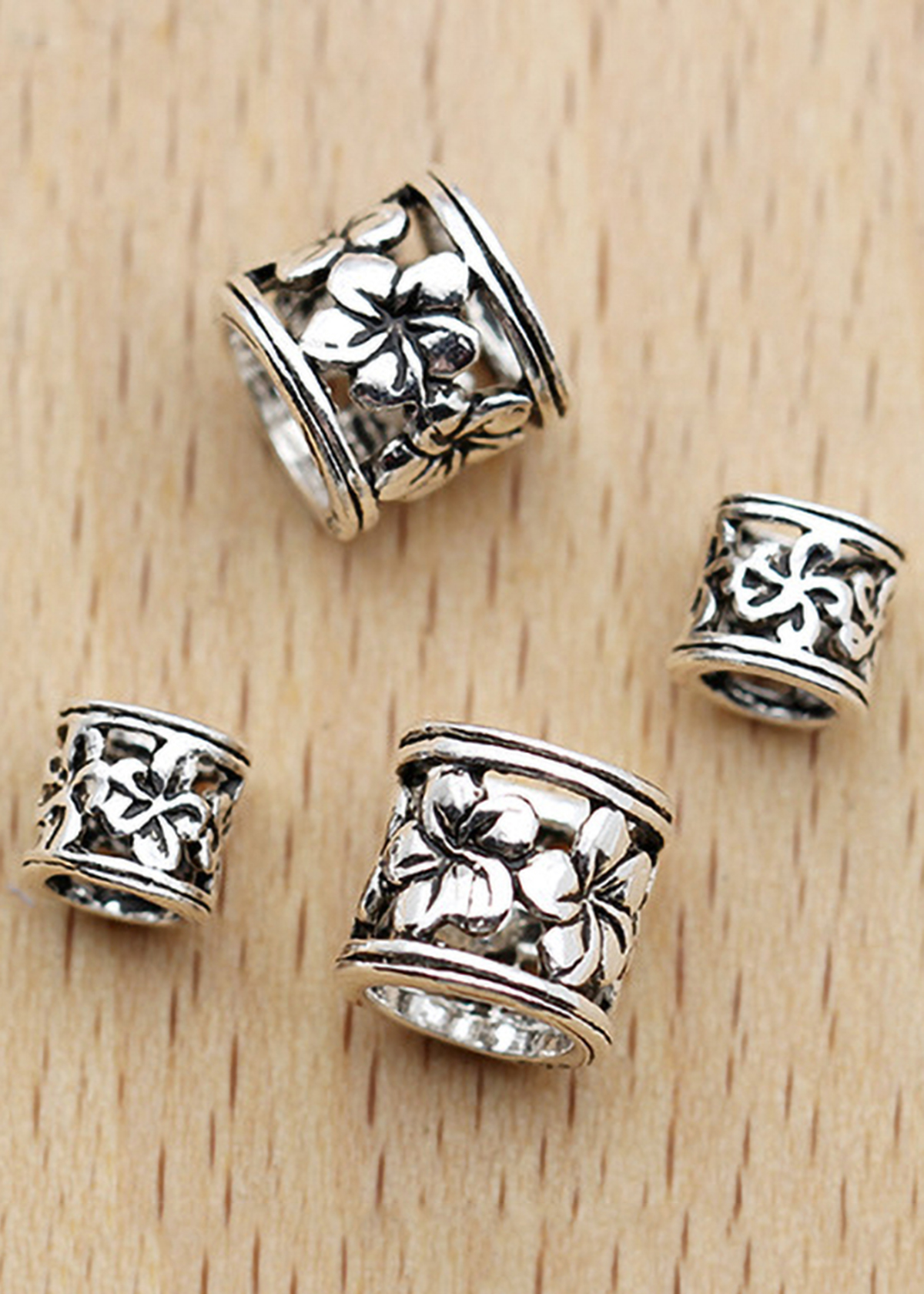 CHARM BẠC CHẶN HẠT HÌNH TRỤ HỌA TIẾT BÔNG HOA