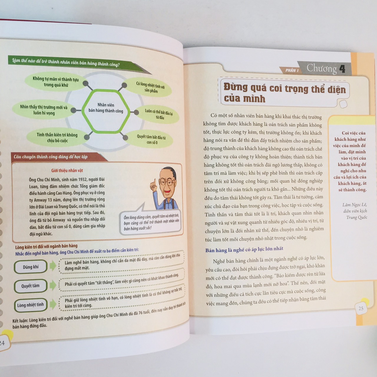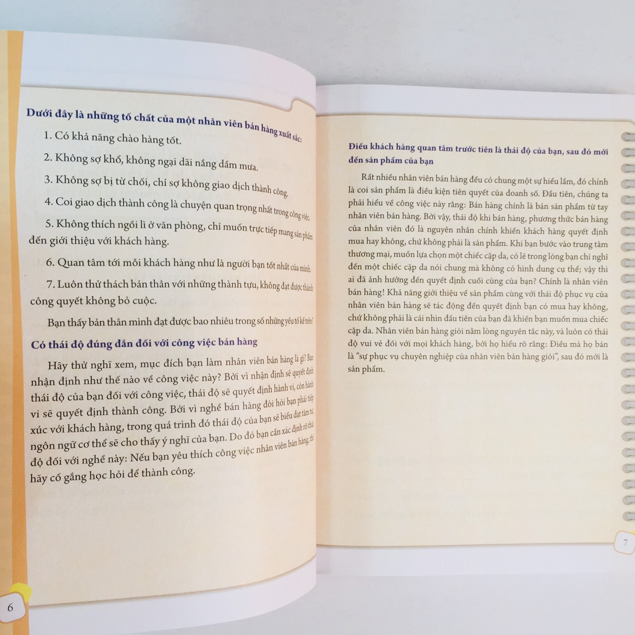 Trong cuốn sách này bạn sẽ tìm thấy những phân tích về cách ứng xử, làm việc giúp đạt được hiệu quả mong muốn, từ việc tìm hiểu thị trường, nghiên cứu khách hàng, nắm bắt thông tin sản phẩm đến các kỹ năng trong trò chuyện, thuyết phục khách hàng, đọc hiểu tâm lý khách hàng,