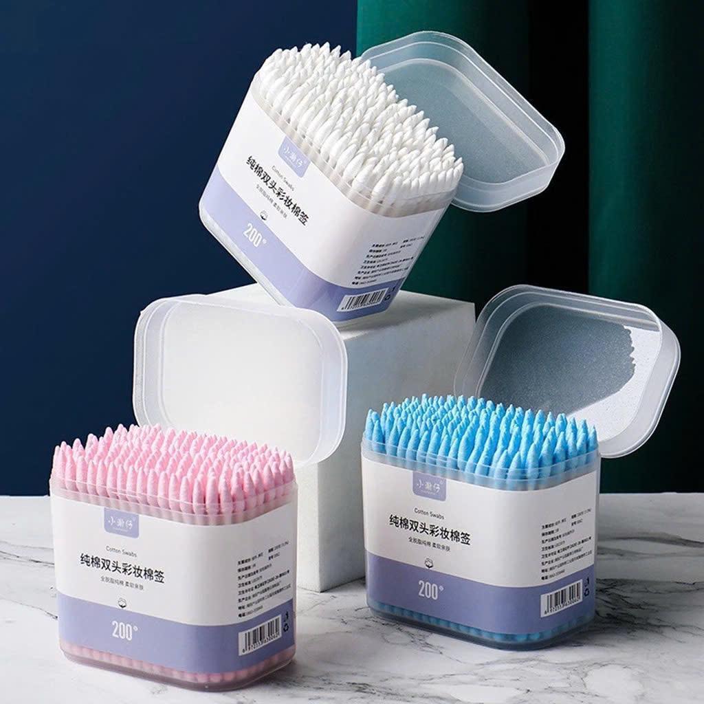 ✨Combo 3 hộp Tăm bông ngoáy tai, trang điểm hai đầu hộp 200 que bông dùng một lần thiết kế đa chức năng tiện dụng, mềm dẻo Cosmetic Mỹ Phẩm Nữ
