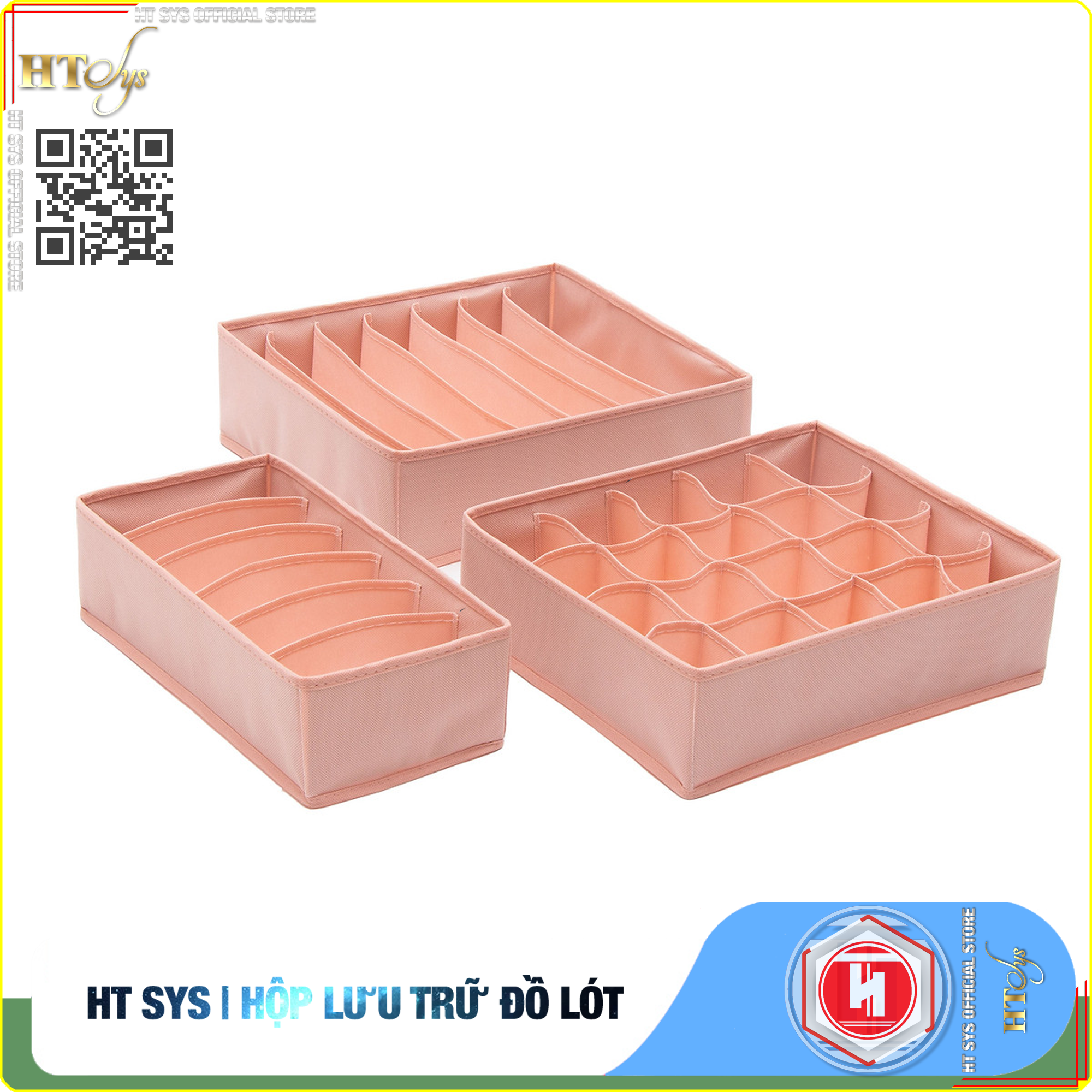 Combo 3 hộp vải đựng bảo quản đồ lót HT SYS-khay đựng quần áo tất vớ bằng vải không dệt tiết kiệm diện tích 6, 7, 20 ngăn - Hàng Chính Hãng
