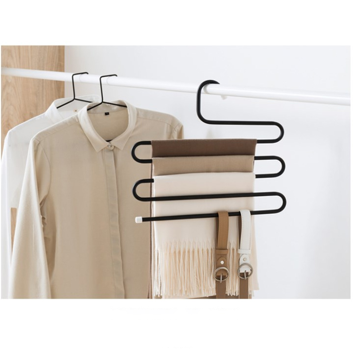 Móc treo quần áo 5 tầng giúp bạn treo quần một cách gọn gàng và ngăn nắp và gọn gàng, giúp không gian tủ quần áo của bạn rộng hơn. Combo 3 Móc treo quần