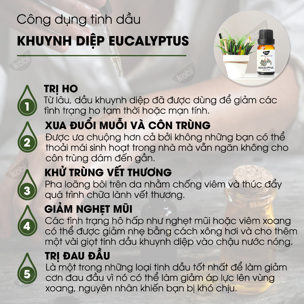 ✨Combo 3 Tinh Dầu Xông Phòng Kobi: Tinh Dầu Khuynh Diệp (30ml) + Tinh Dầu Sả Chanh (30ml) + Tinh Dầu Hương Thảo (30ml) - Tinh Dầu Thiên Nhiên Nguyên Chất, Tốt Cho Bé Sơ Sinh, Giúp Giữ Ấm Cơ Thể, Phòng Ngừa Bệnh Hô Hấp Hiệu Quả