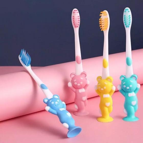 COMBO 4 BÀN CHẢI ĐÁNH RĂNG CHO BÉ HÌNH GẤU SIÊU CUTE VỚI 4 MÀU KHÁC NHAU CỚ BỌC BẢO VỆ ĐẦU TIỆN LỢI