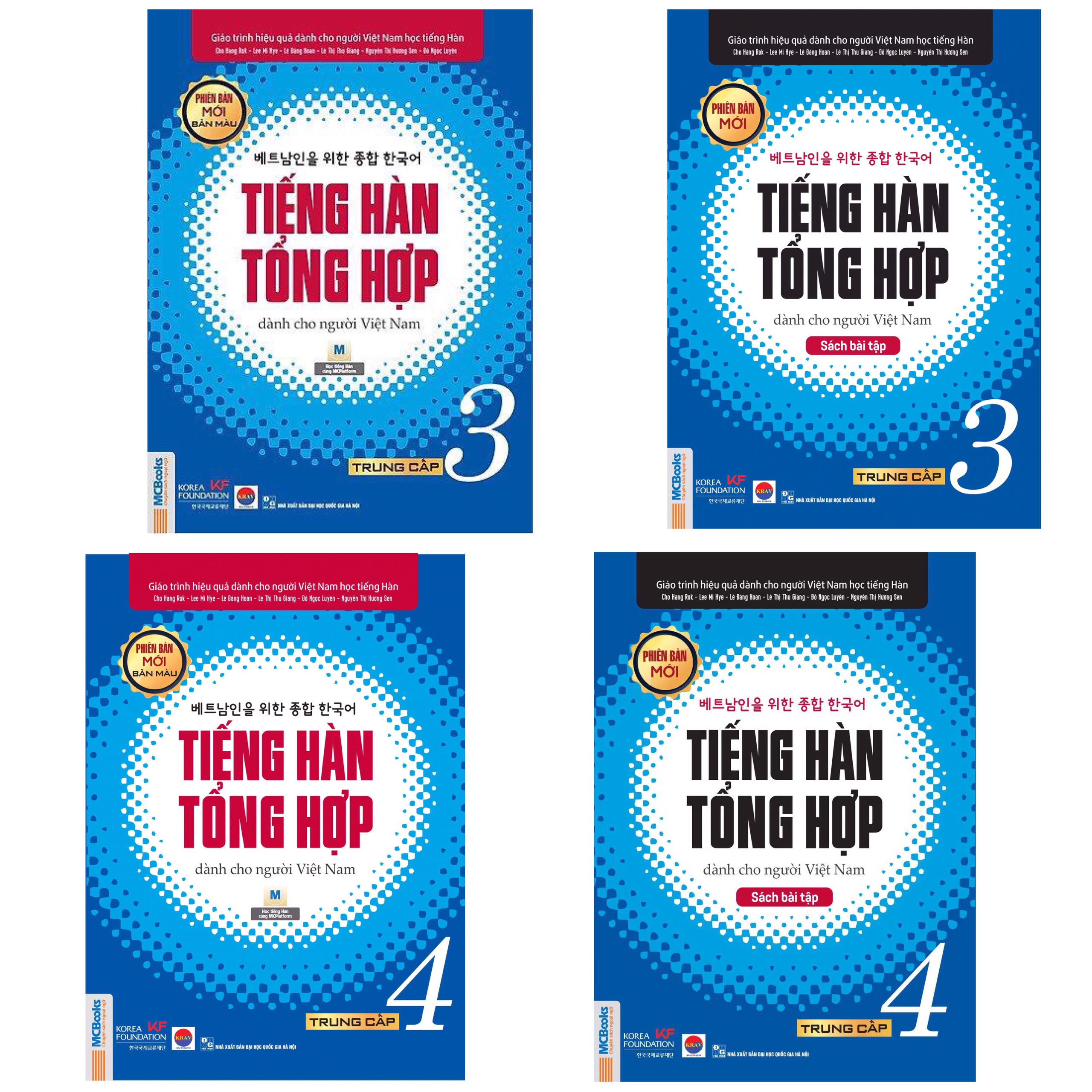 Combo (4 Cuốn) Giáo Trình Tiếng Hàn Tổng Hợp Trung Cấp Tập 3 + Tập 4 (Sách Giáo Khoa và Sách Bài Tập) - Phiên Bản Mới / IN MÀU / Sách Học Tiếng Hàn Hiệu Quả Cho Người Việt
