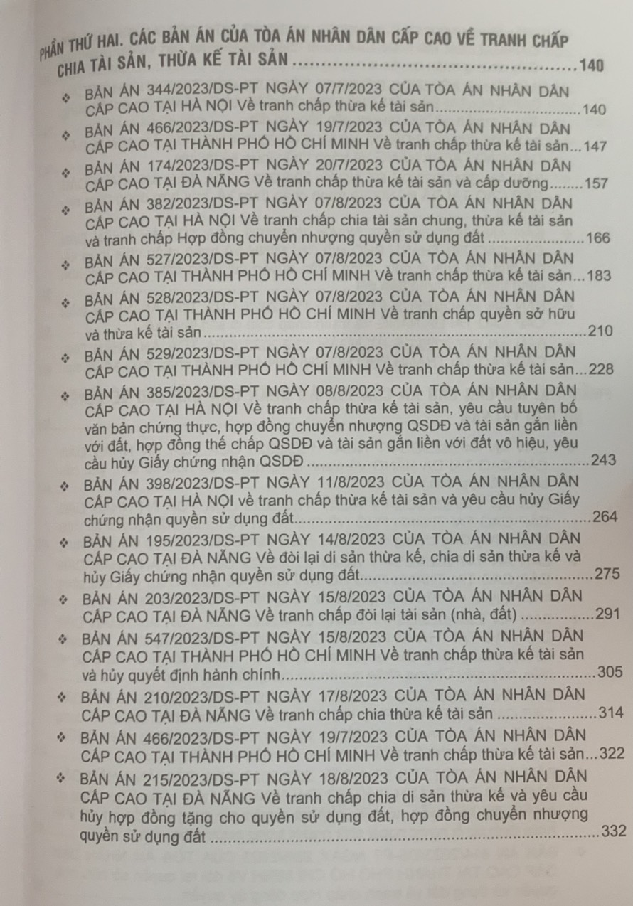 1.Tuyển tập các bản án của Tòa án nhân dân cấp cao về dân sự và tố tụng dân sự