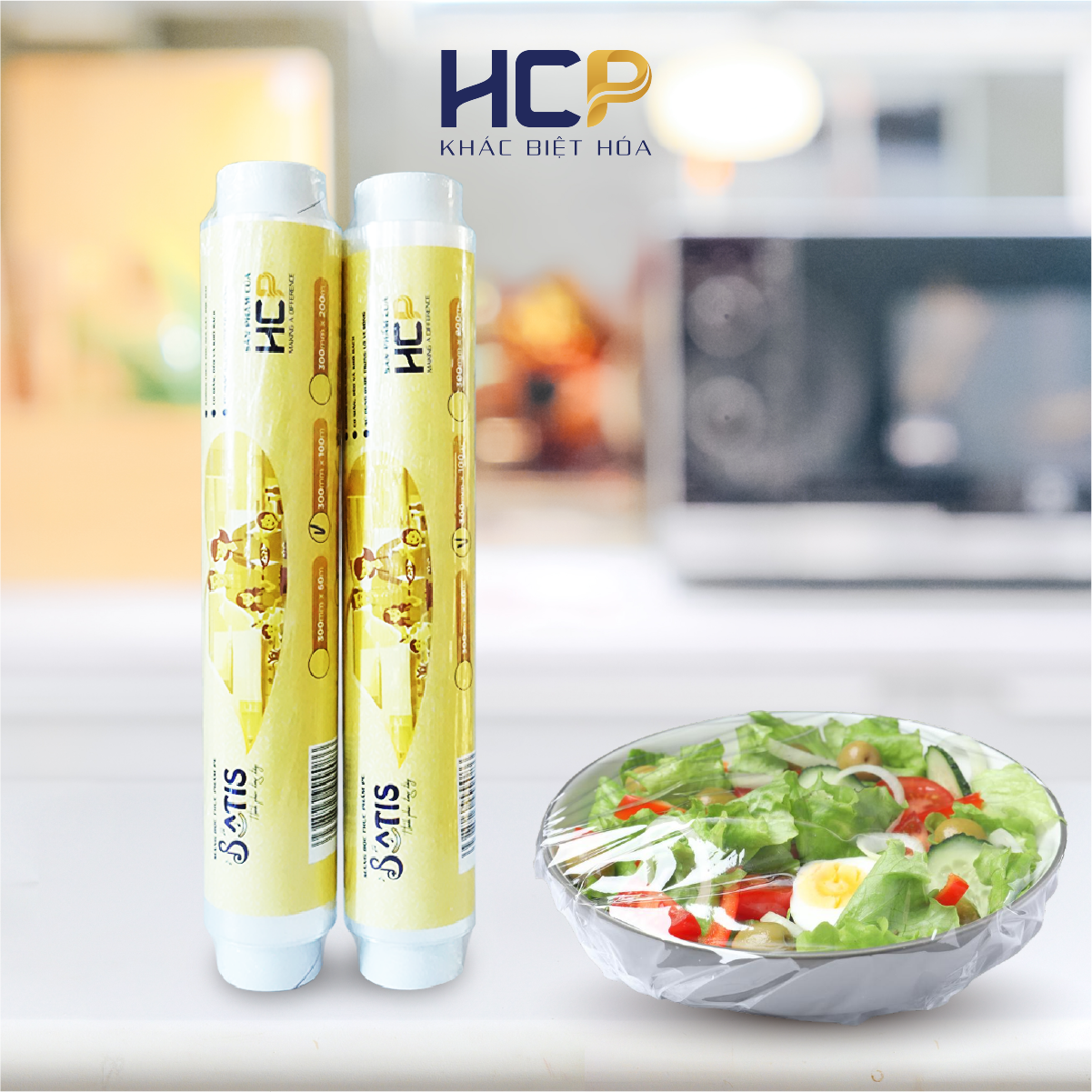 • HCP chuyên sản xuất màng căng công nghiệp, màng bọc thực phẩm PE và cung cấp các sản phẩm gia dụng khác như giấy bạc nướng, giấy thấm dầu và găng tay TPE.