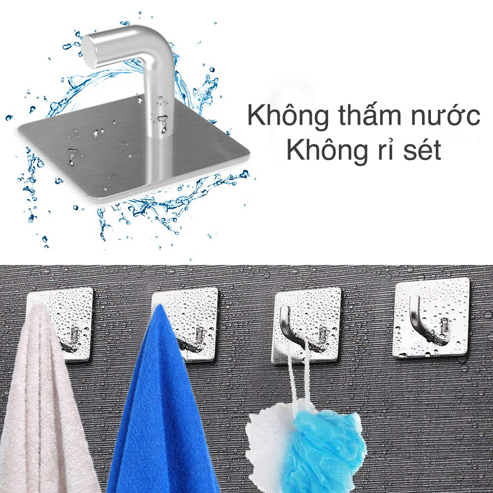 Bộ 4 móc inox dán tường nhựa VIỆT NHẬT - Keo dán 3M siêu dính, chịu lực, treo đồ, quần áo