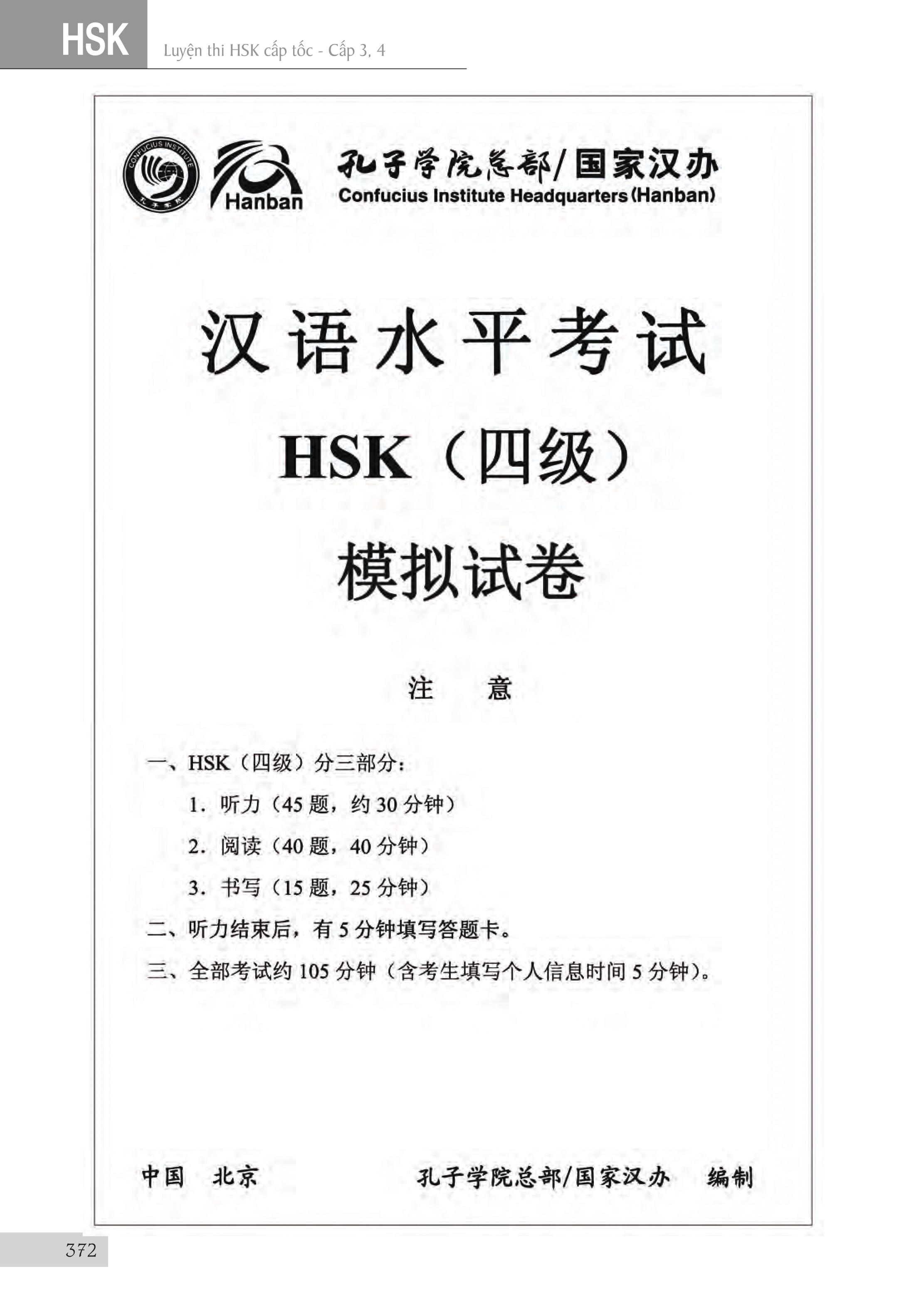 1. Luyện thi HSK cấp tốc cấp 3+4 Tác giả: Trương Văn GIới & Lê Khắc Kiều Lục Nhà xuất bản Đại Học Quốc Gia TPHCM Số trang: 424 Kích thước: 18.5cm x 26.5cm x
