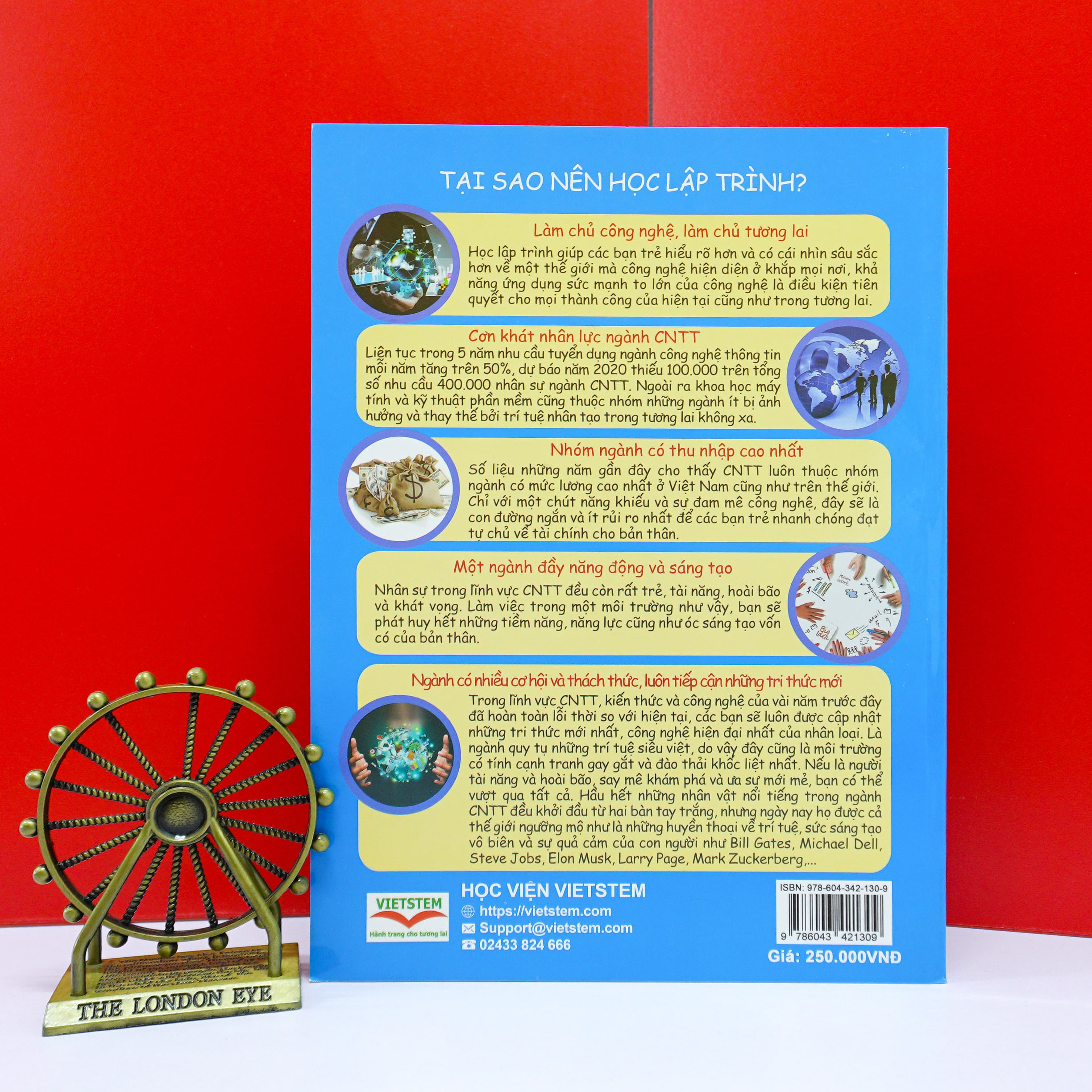 Combo 4 sách học lập trình kéo thả cho học sinh từ 6 - 18 tuổi 1. SÁCH "LẬP TRÌNH VỚI SCRATCH 3" Hướng dẫn học sinh từ 6 - 16 tuổi làm quen và