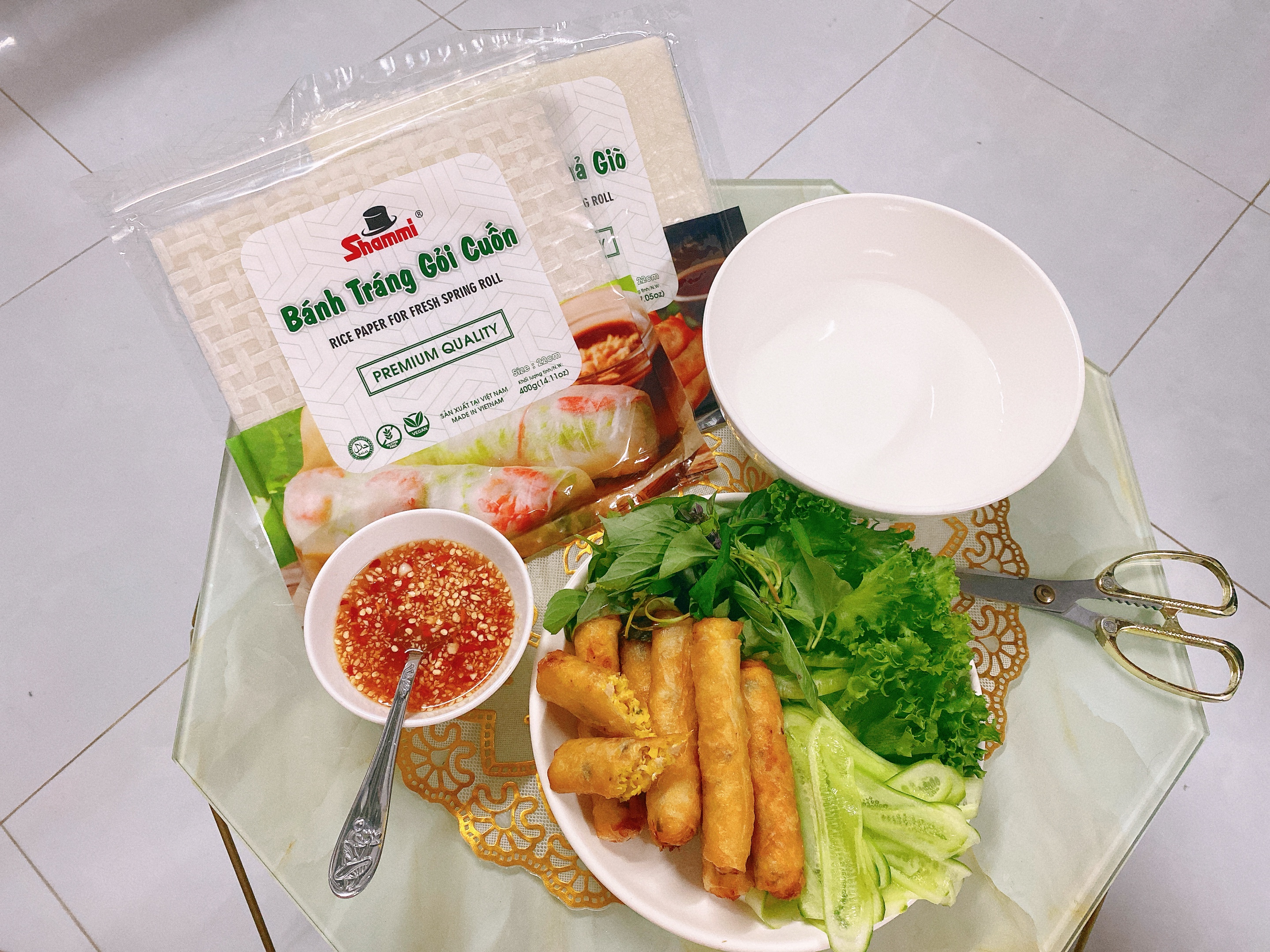 Với combo ăn ý sẽ cho bạn một bữa tiệc cuốn siêu ngon và hấp dẫn. Món bánh tráng cuốn chả giò và sự kết hợp giữa bánh tráng trắng, bánh tráng chả giò, bún