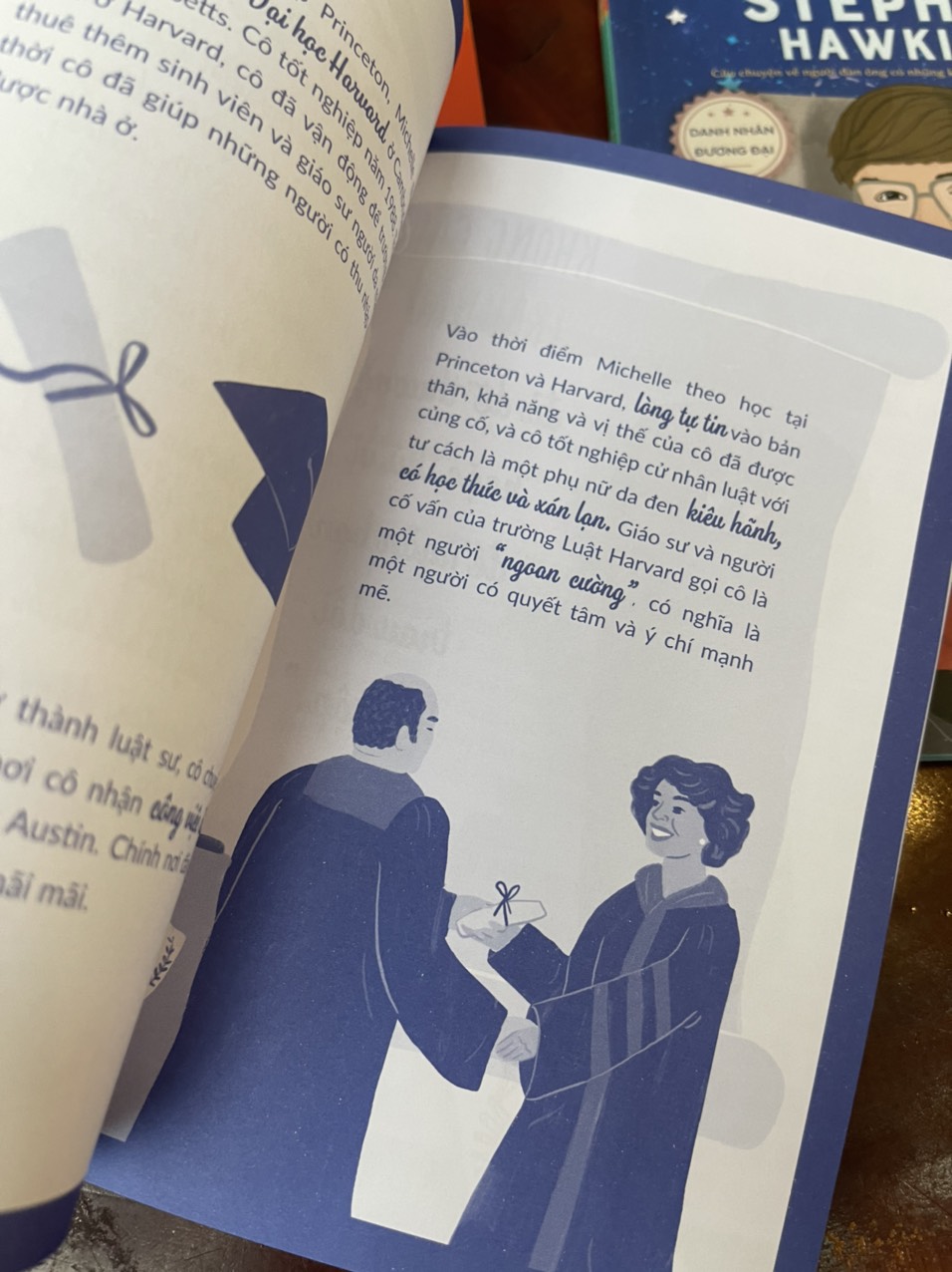 MICHELLE OBAMA sinh ra tại Chicago và đã đấu tranh đòi quyền bình đẳng một thời gian dài trước khi trở thành phu nhân tổng thống của Hợp chúng quốc Hoa Kỳ. Với tư cách là một nhà vận động ủng hộ đa sắc tộc và một tiếng nói đanh thép từ Nhà Trắng, bà đã truyền cảm hứng cho mọi người trên khắp thế giới. Bà vẫn tiếp tục dùng sức ảnh hưởng của mình để thay đổi và giúp thế giới trở nên tốt đẹp hơn.