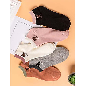 Combo 10 Đôi Tất Nữ Hình Gấu Cổ Ngắn Dễ Thương - Kèm Túi Đựng - Chất liệu vải mềm, nhẹ, co giãn 4 chiều, thấm hút mồ hôi, bền màu - Form chuẩn, thiết